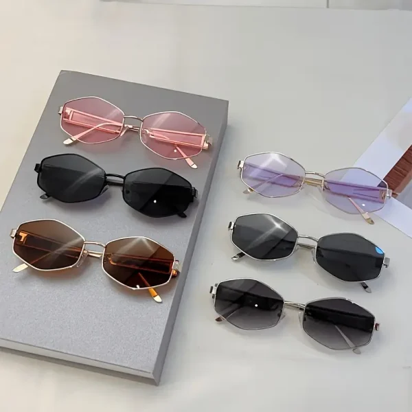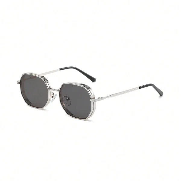 نظارات مستطيلة إطار معدني مع عدسات عاكسة.