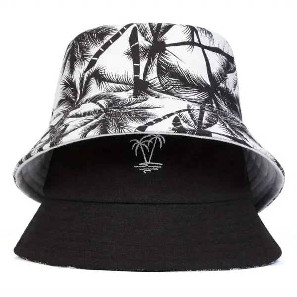 قبعة دلو رجالية قابلة للعكس بتطريز شجرة، قبعة بوليستر خفيفة للحماية من الشمس