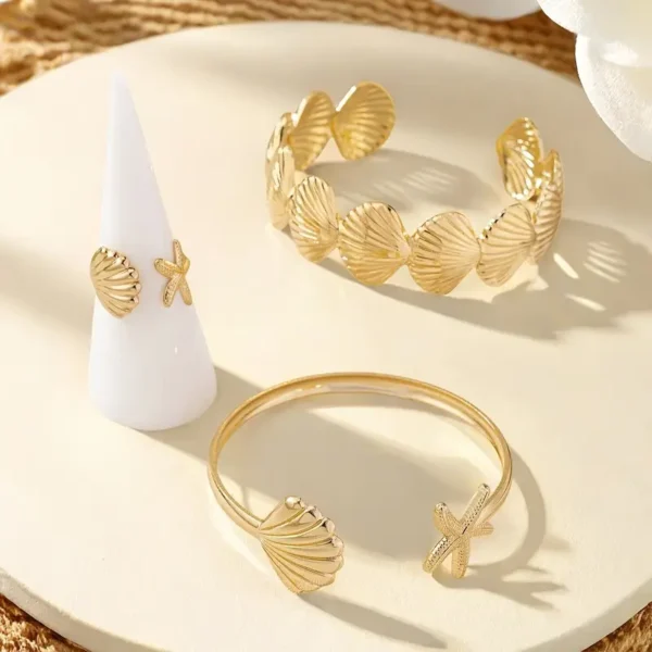 طقم أساور للنساء نجمة البحر والقواقع، إكسسوارات قابلة للتعديل لهدايا الشاطئ الصيفية