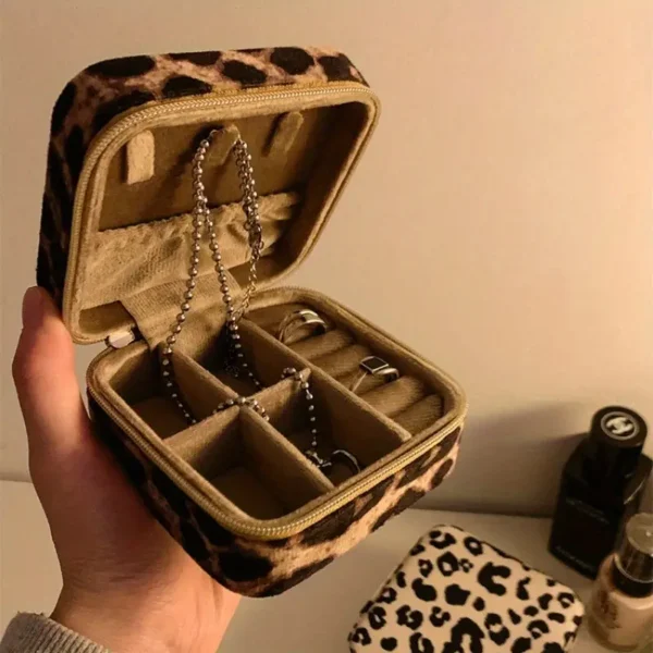 صندوق مجوهرات بطبعة فهد مع سحاب، منظم إكسسوارات للسفر بتصميم أنيق ومريح، مثالي للاستخدام أثناء السفر والمناسبات