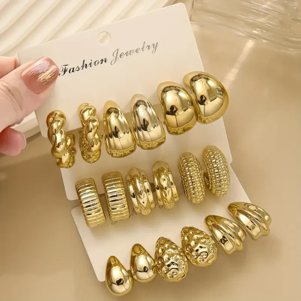 طقم أقراط نسائية متدلية بتصميم بانك وطبعة عتيقة، 18 قطعة لإطلالة جريئة وعصرية