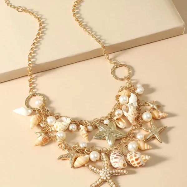 قلادة نسائية بتعليقات بحرية، نجمة البحر وقوقعة وفرس البحر