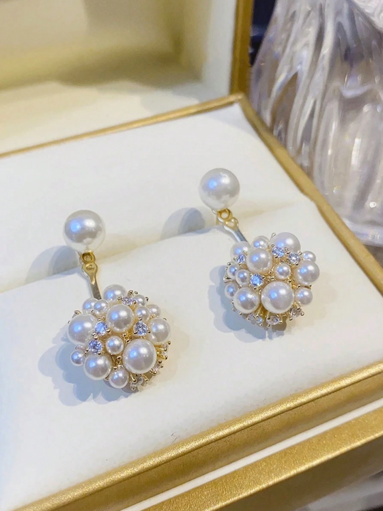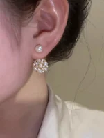 أقراط لؤلؤ نسائية فرنسية أنيقة، تصميم أمامي وخلفي بسيط أنيق وفاخر لكل المناسبات