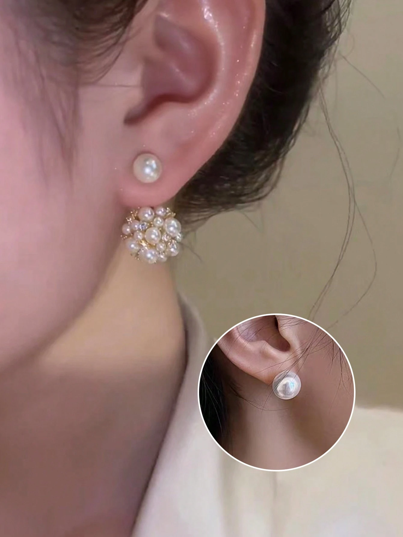 بتصميم أمامي وخلفي يبرز جمال الأذن من جميع الزوايا، تأتي هذه الأقراط بلؤلؤ صناعي راقٍ يضفي لمسة كلاسيكية ساحرة.