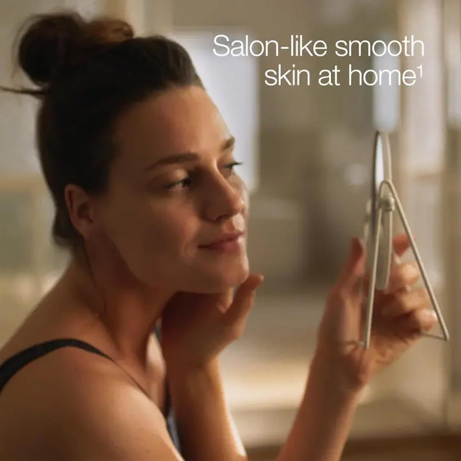 • تقنية سينسوادابت: قوة مثالية لكل جزء من الجسم مع سكين برو 2.0 – تقنية شبيهة بصالونات التجميل التي تتكيف تلقائيًا وبشكل مستمر مع لون بشرتك.
