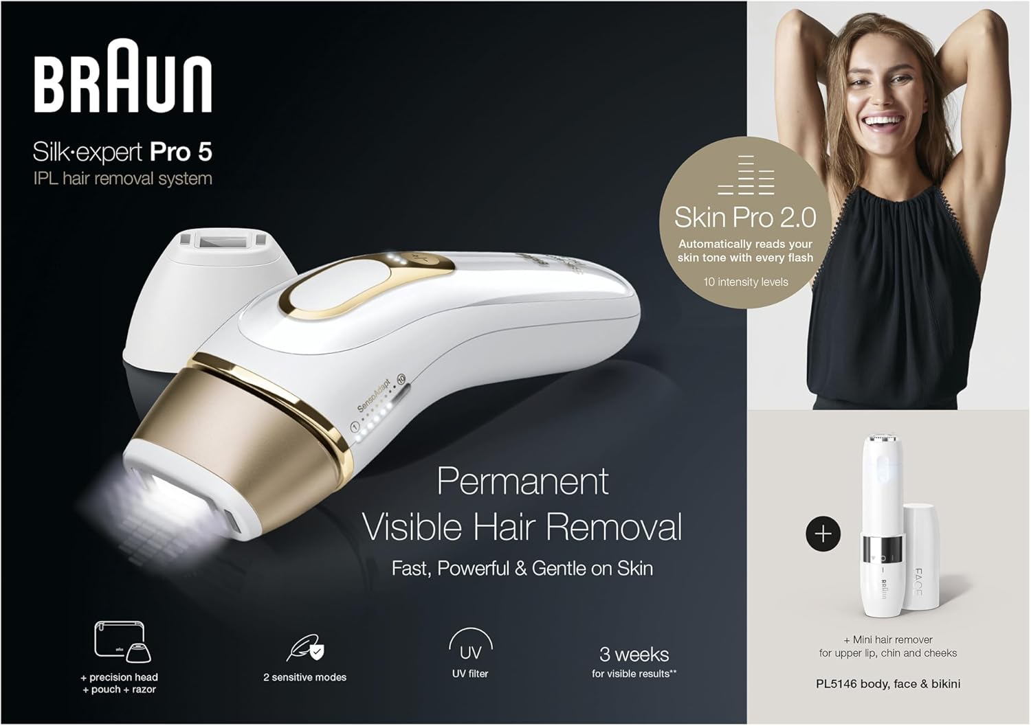 براون سيلك اكسبرت PL5146 – جهاز إزالة الشعر بالنبض الضوئي للجسم والوجه، 400,000 ومضة
