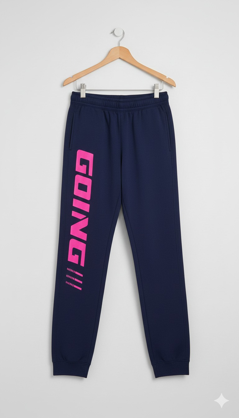 بنطلون رياضي نسائي كحلي جوجر قطن بطباعة GOING لإطلالة مريحة وعصرية