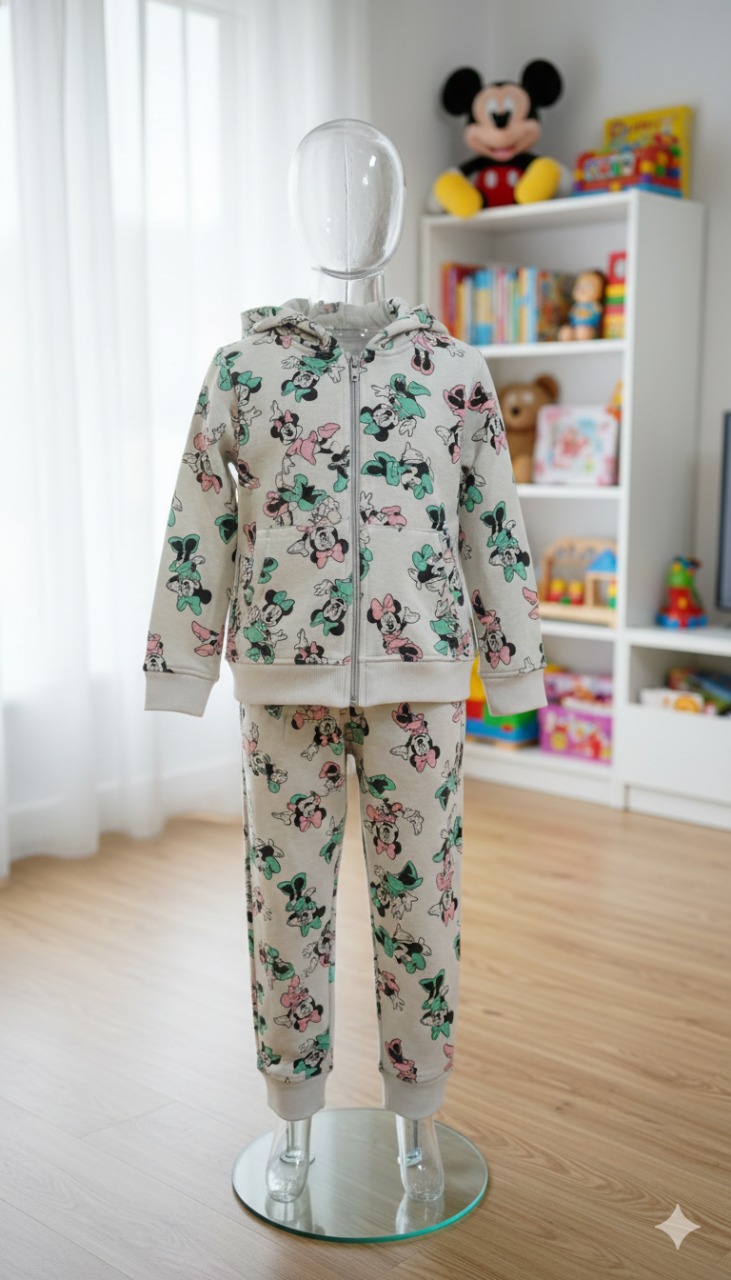 يأتي التصميم مزوّدًا بقبعة منقوشة برسومات ميكي ماوس وميني لإطلالة مرحة.