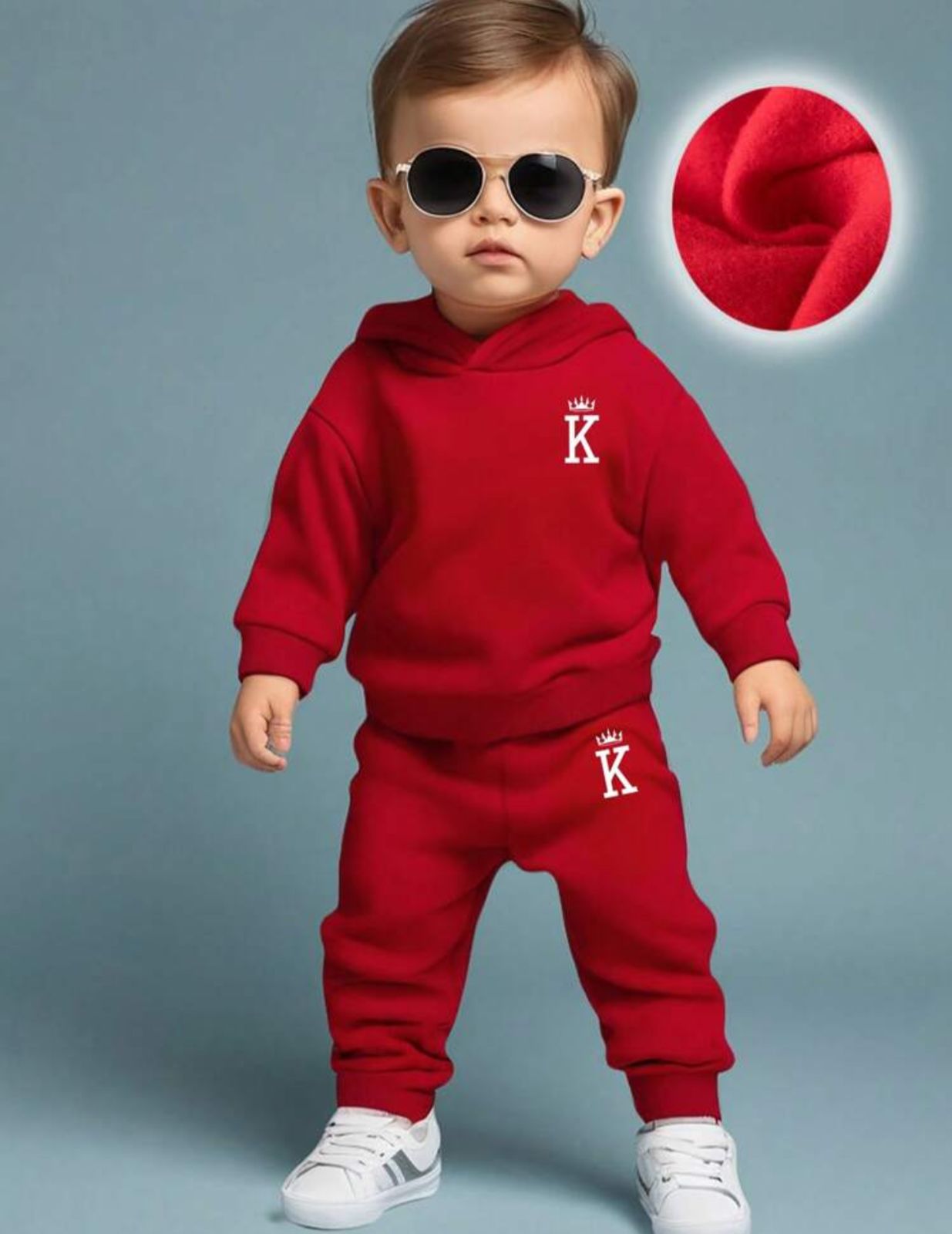 يتكون من هودي وبنطلون يوفران راحة وسهولة في الحركة، مع طبعة حرف K وتاج تضيف لمسة من الأناقة والتميز.