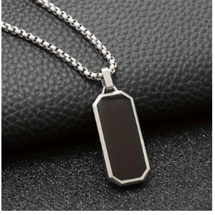 - الفولاذ المقاوم للصدأ (ستانلس ستيل): القلادة مصنوعة من الفولاذ المقاوم للصدأ عالي الجودة، مما يجعلها مقاومة للتآكل والصدأ. المادة توفر لمسة لامعة وراقية، وتظل محافظة على مظهرها لفترة طويلة، حتى مع الاستخدام اليومي.