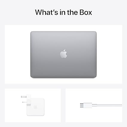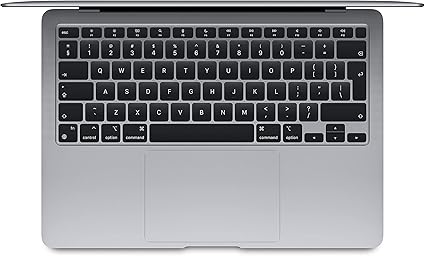 لابتوب Apple MacBook Air موديل 2020: شريحة Apple M1، وشاشة Retina مقاس 13 إنش، وذاكرة RAM سعة 8GB، وقرص SSD سعة 256GB، ولوحة مفاتيح بإضاءة خلفية. يعمل مع iPhone وiPad؛ بلون رمادي فلكي ; انكليزي
