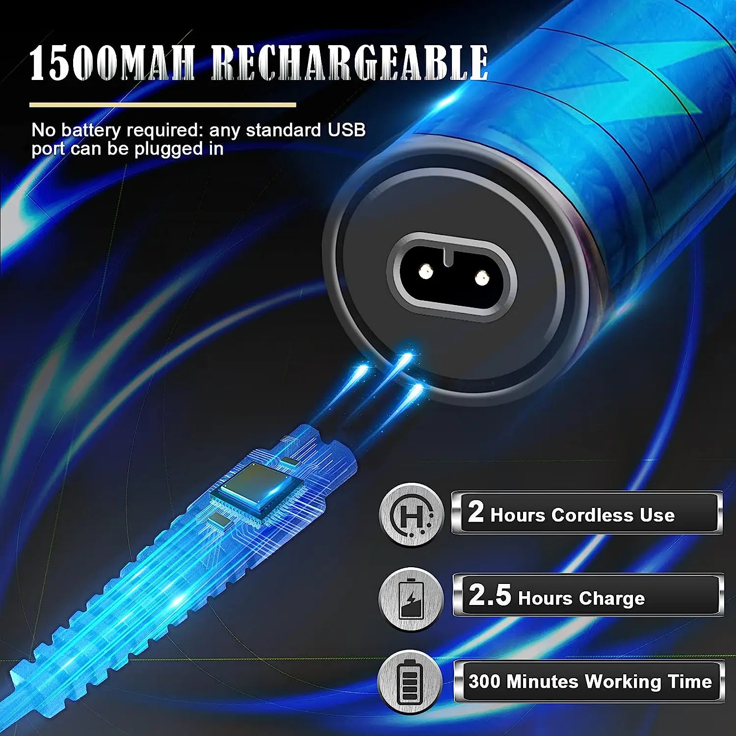 - بطارية بسعة كبيرة أداة حلاقة بدون أسلاك وبدون فتحات وتتميز ببطارية مدمجة قابلة لإعادة الشحن بقدرة 1500 مللي أمبير. يستغرق الأمر ساعتين فقط للشحن الكامل مع كابل USB لتوفر وقت تشغيل يصل إلى 180 دقيقة. ماكينة حلاقة الشعر اللاسلكية التي تدوم طويلاً مناسبة جدًا للحلاقة وجميع أفراد العائلة. يرجى شحنها بالكامل قبل استخدامها لأول مرة (99 يعني الشحن الكامل).