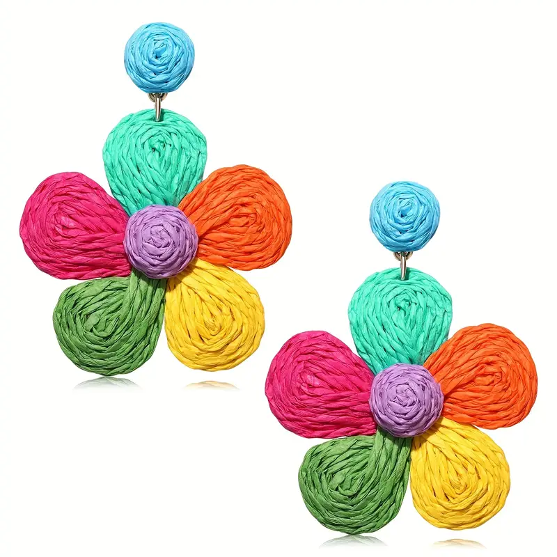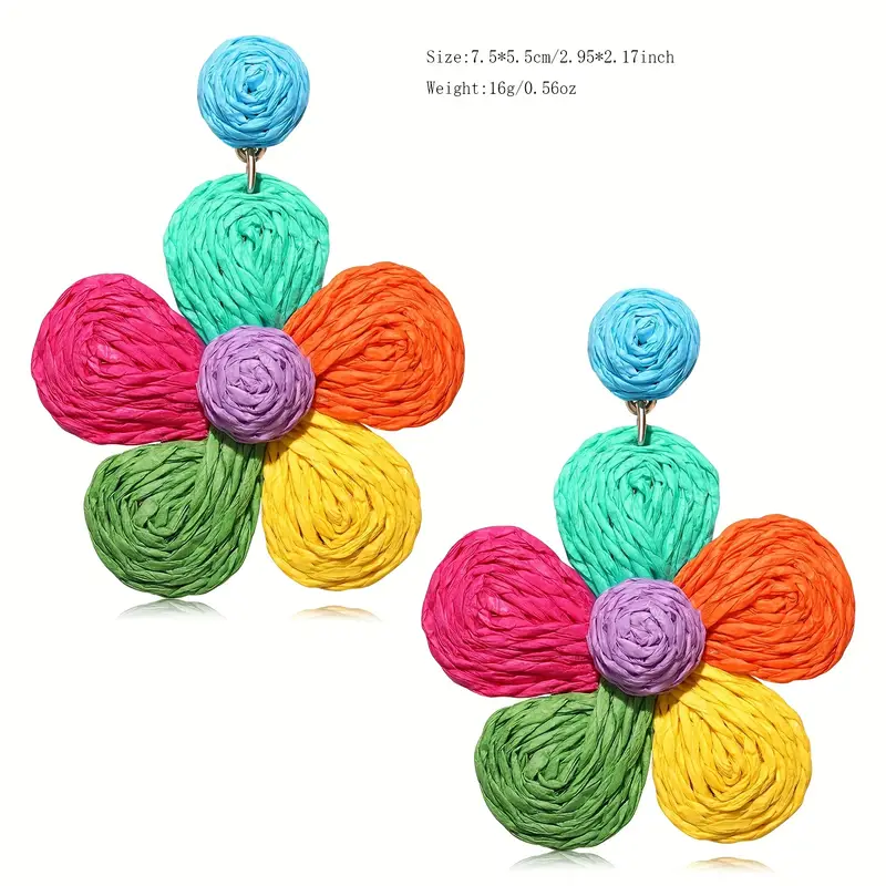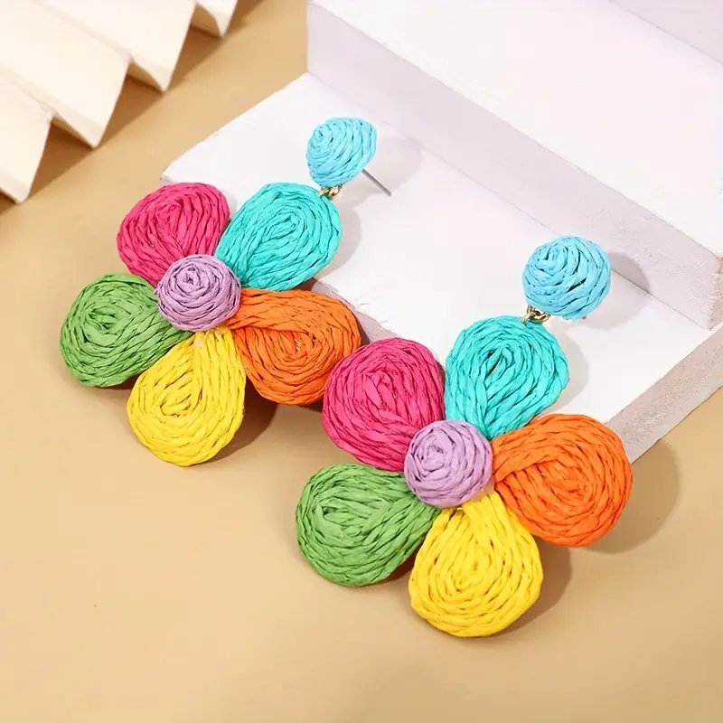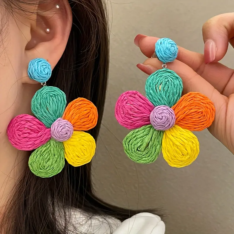 أضفي لمسة من البهجة والتميّز على إطلالتك مع هذه الأقراط البوهيمية الملونة المستوحاة من أجواء العطلات وحيوية الطبيعة. تأتي بتصميم زهور جذّاب مطلي بالذهب عيار 18 قيراط، مع دعامات متينة من الفولاذ المقاوم للصدأ، لتجمع بين الأناقة والجودة في قطعة فريدة تُلائم جميع الفصول والمناسبات.
