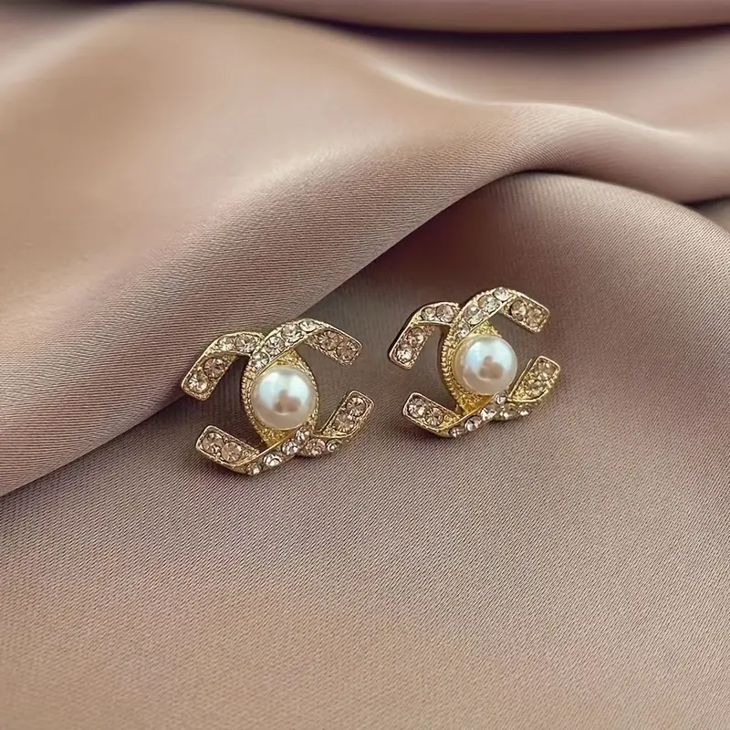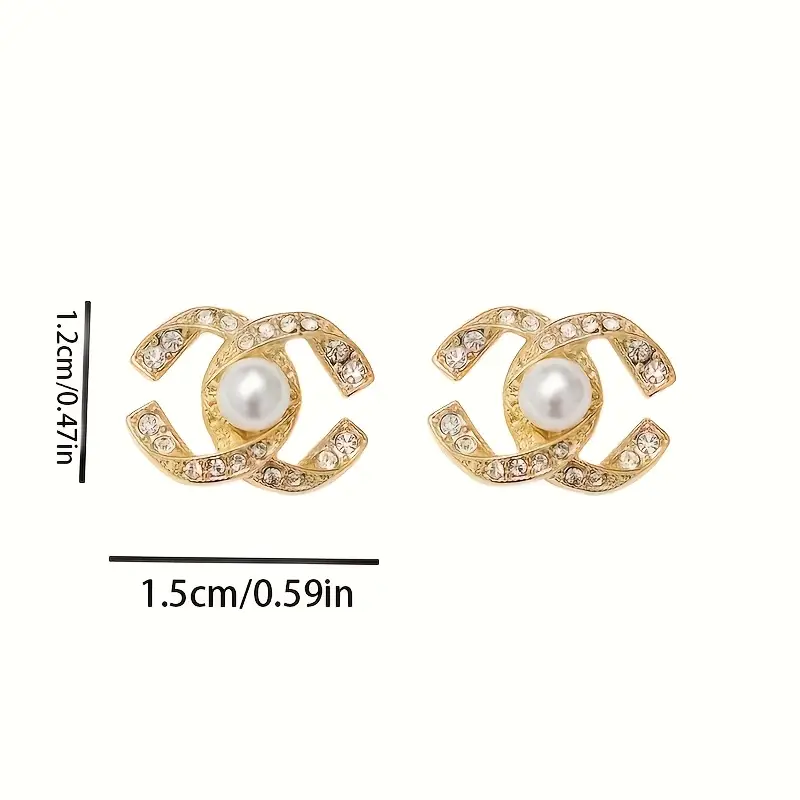 أقراط لؤلؤ نسائية مزدوجة فاخرة مرصعة بالراينستون بتصميم كلاسيكي أنيق، مناسب لجميع المناسبات من الإطلالات الكاجوال إلى الحفلات الرسمية