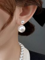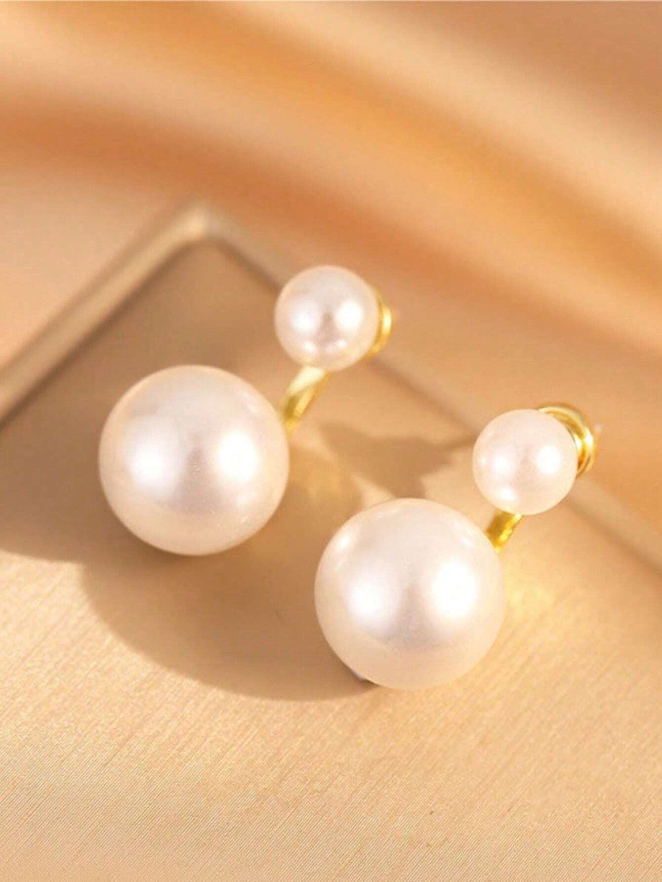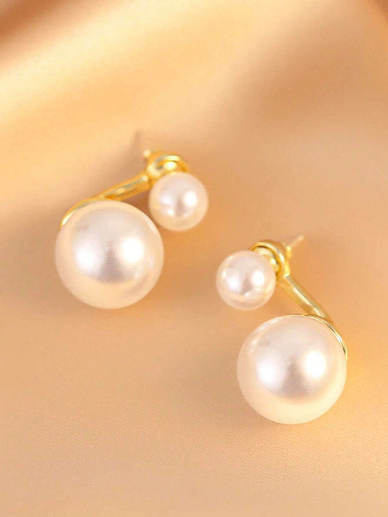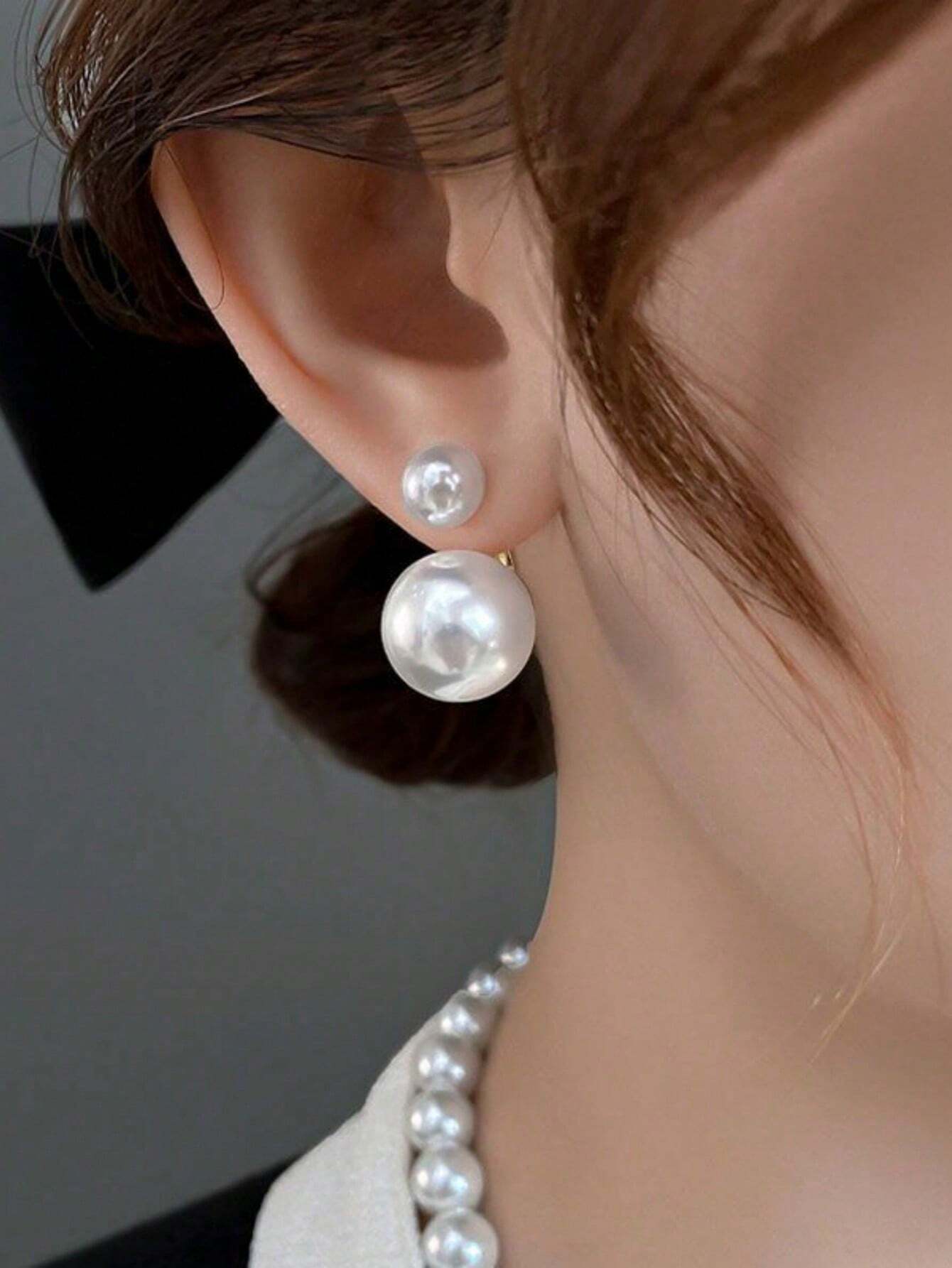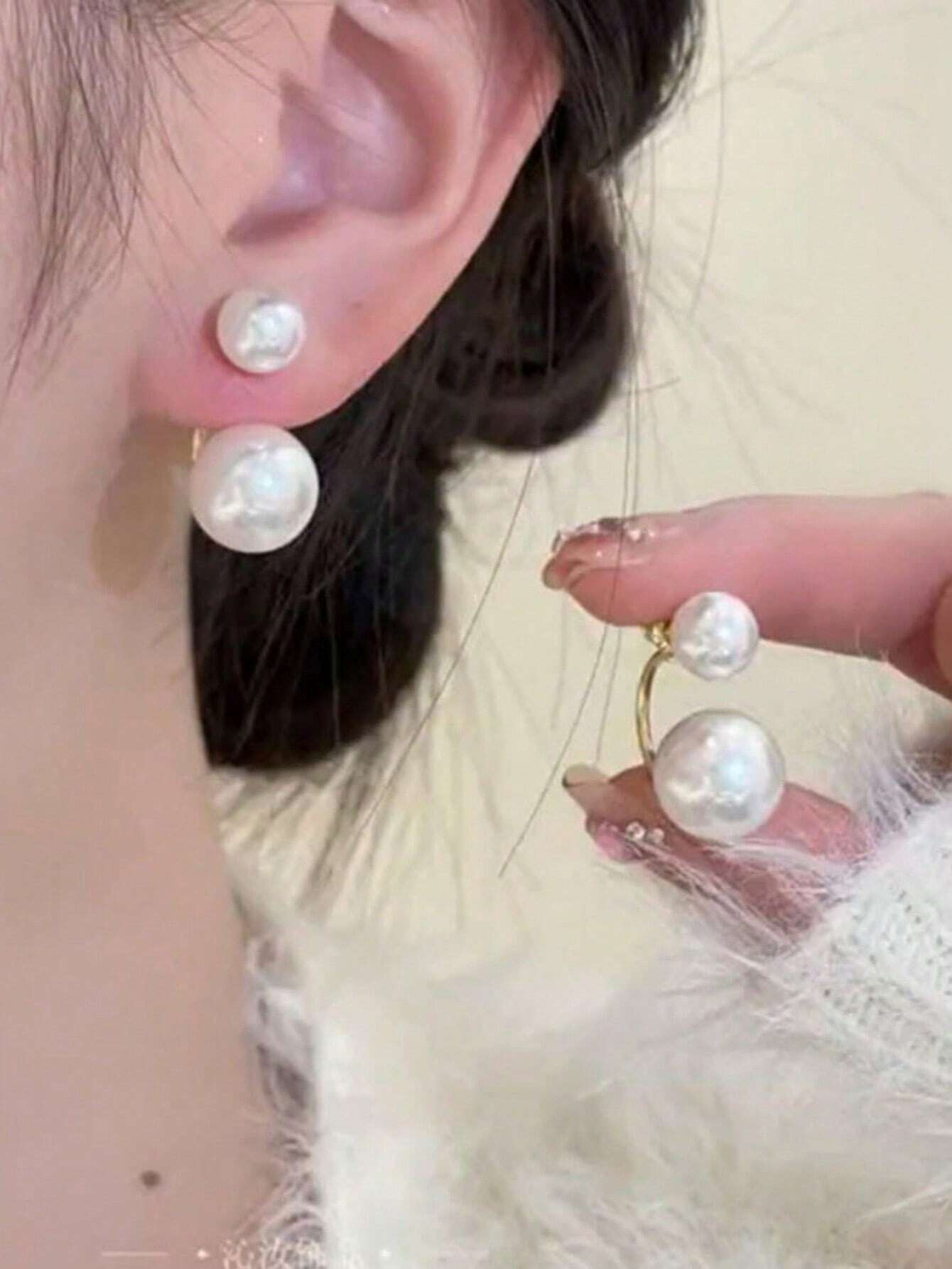 أقراط لؤلؤ نسائية مزدوجة فرنسية أنيقة، إكسسوار فاخر ومتعدد الاستخدامات للنساء