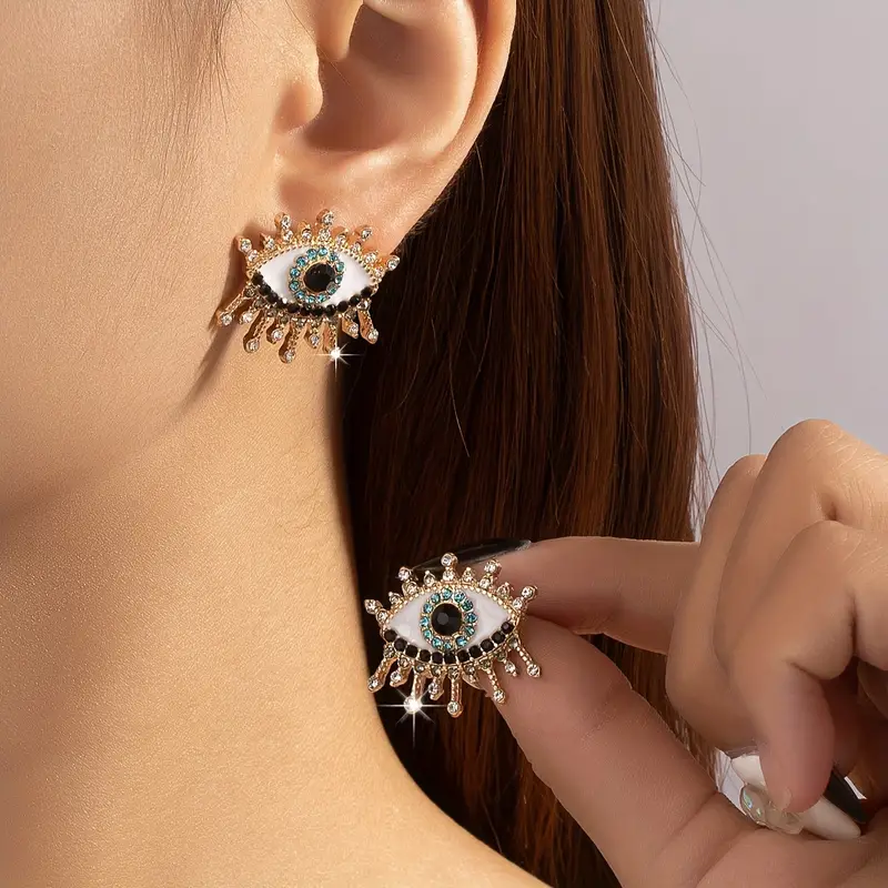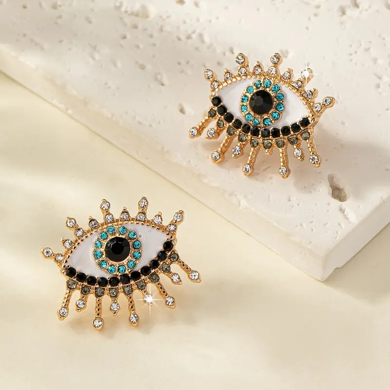 أقراط معلقة بعين الشر بأسلوب عصري، سبيكة من الزنك مزينة بأحجار صناعية متعددة الألوان، مجوهرات إبداعية للنساء
