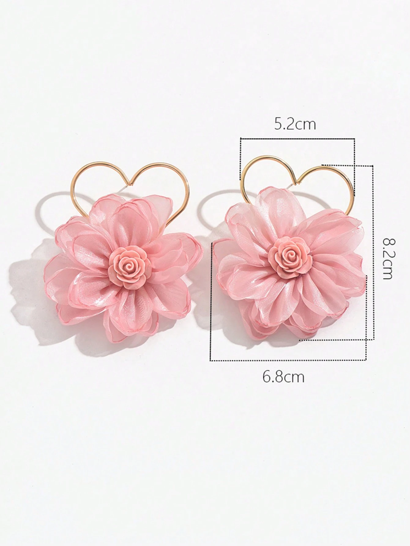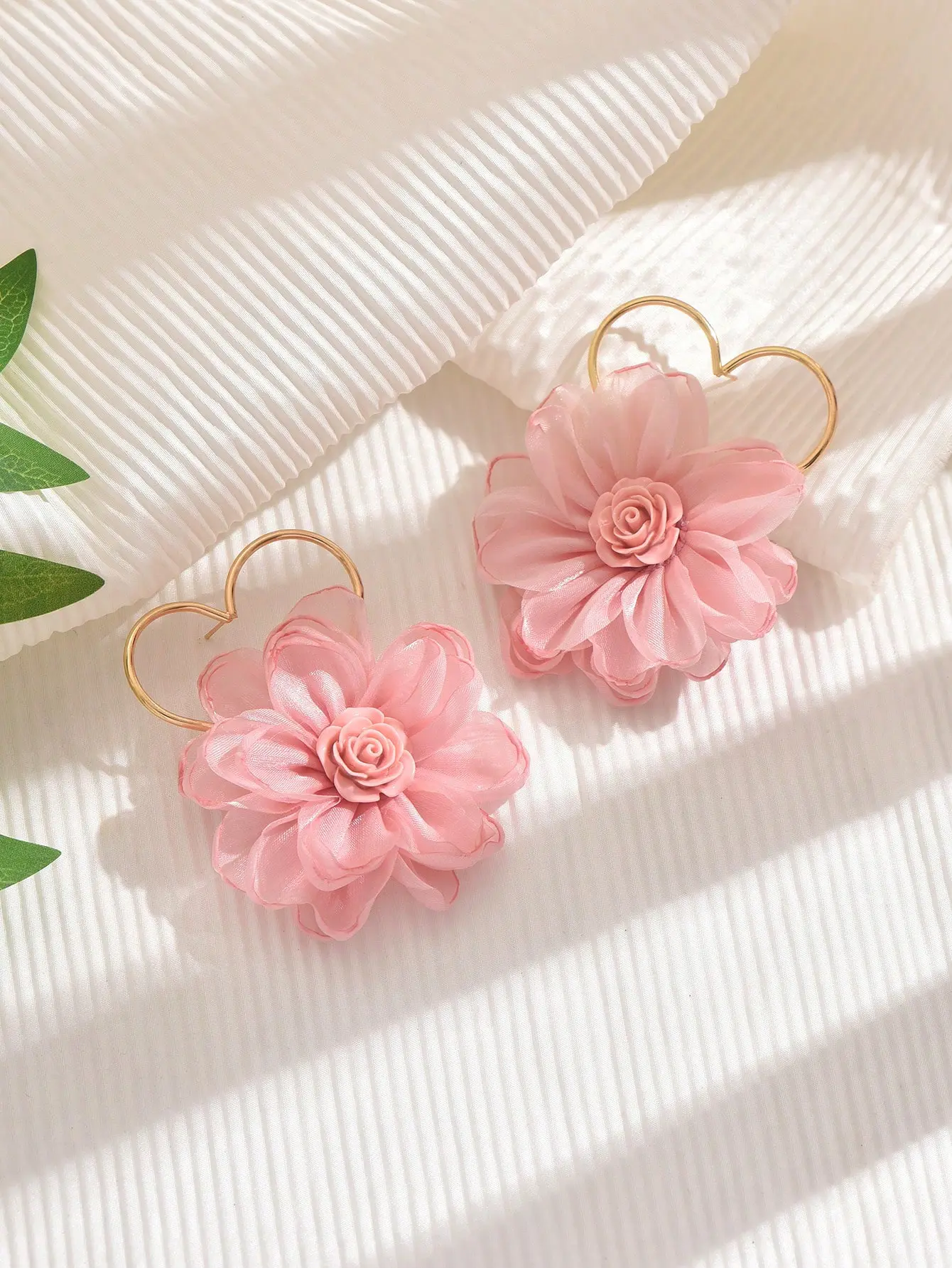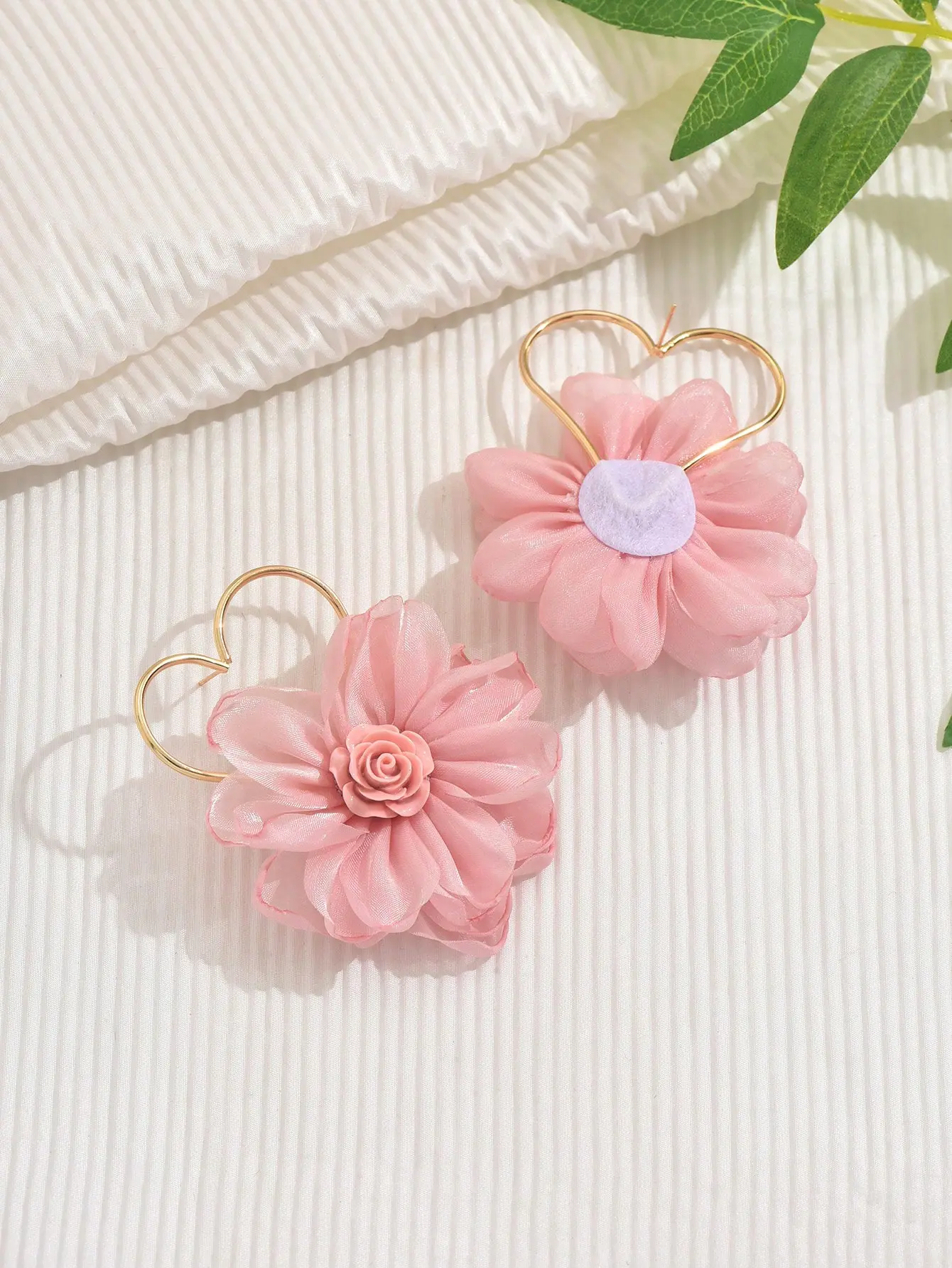 أقراط القلب المجوف المزينة بالزهور القماشية تضيف لمسة رومانسية إلى مظهرك.