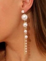 اللؤلؤ الصناعي يعطيها بريقًا ناعمًا، بينما يضمن التصميم المتدلي خفة في الوزن وراحة في الارتداء.