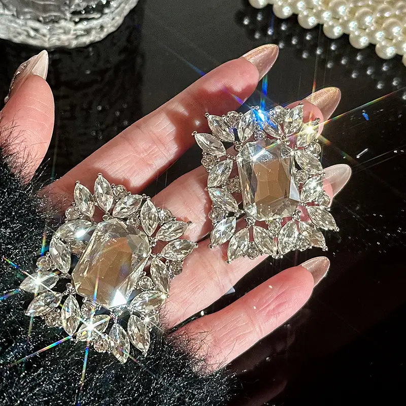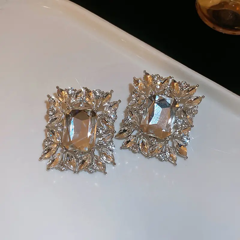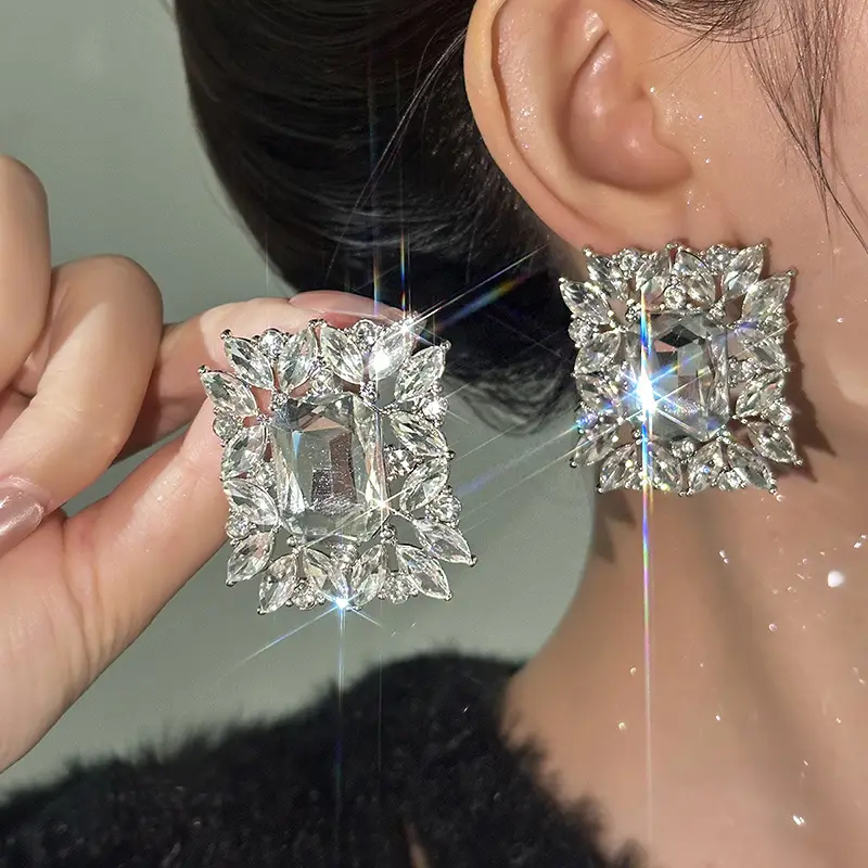 أقراط نسائية مربعة هندسية مرصعة بالراينستون، فضة 925 فاخرة للمناسبات والحفلات
