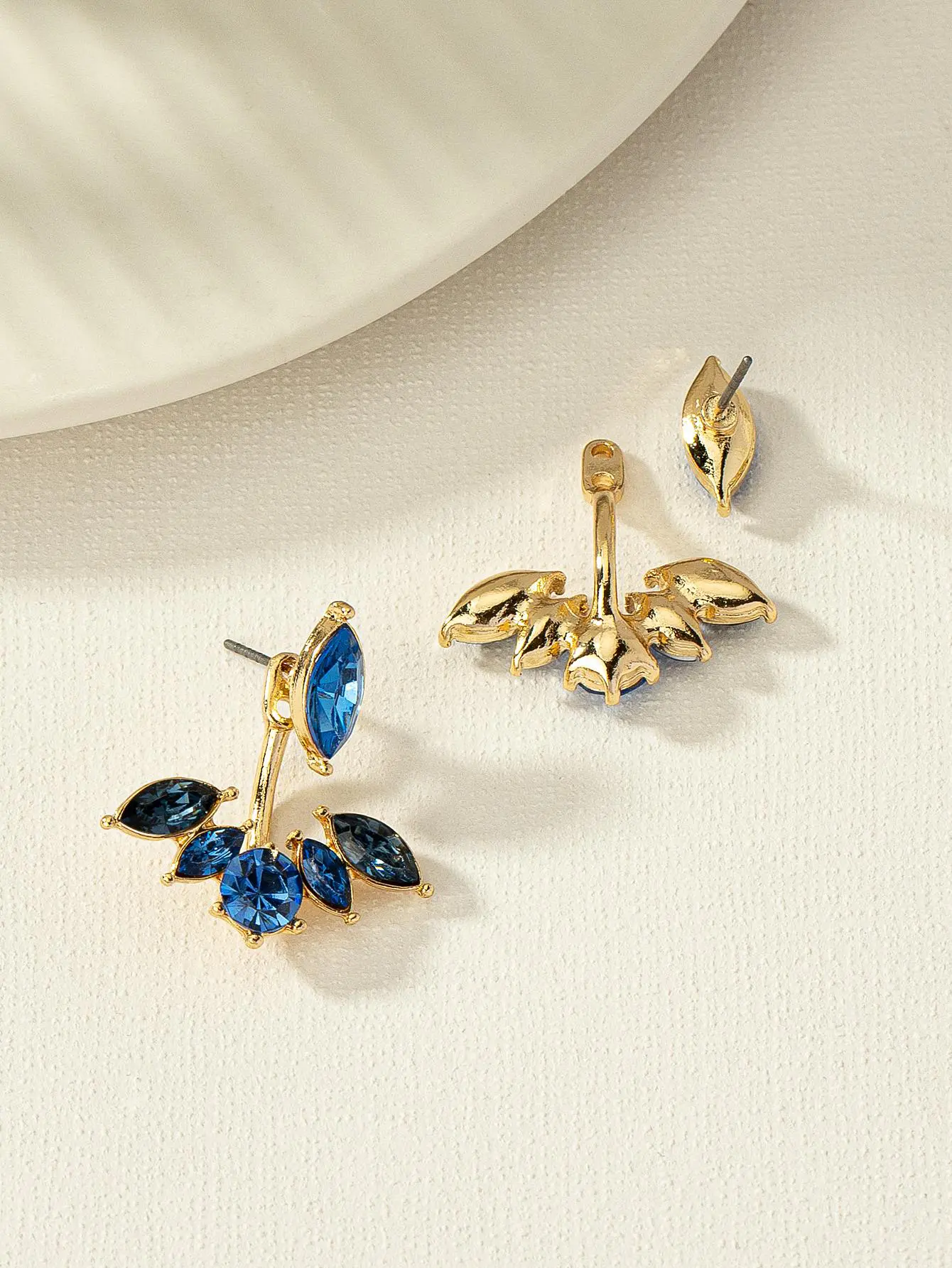 استمتعي بإطلالة أنثوية مميزة مع أقراط الجاكيت المصممة من سبائك الزنك اللامعة والمزينة بأحجار الراين الفاخرة.