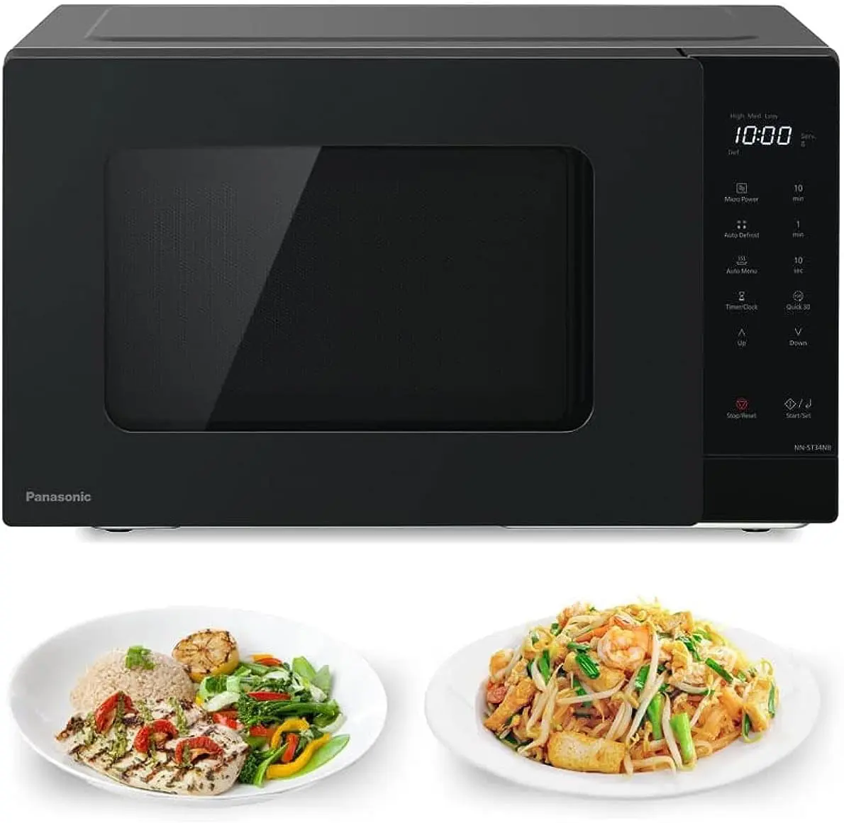 فرن ميكروويف سولو صغير سعة 25 لتر بقوة 900 وات يفتح بالضغط، بخاصبة إذابة الثلج تلقائيا، قفل أمان للأطفال، تشغيل باللمس، بـ 30 وظيفة سريعة من باناسونيك، لون أسود، موديل NN-ST34NB
