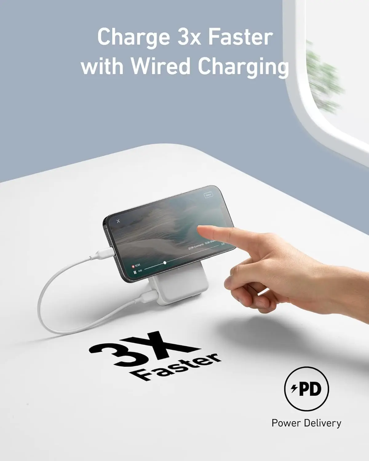 لو محتاج سرعة أعلى من اللاسلكي: استخدم منفذ 20W USB‑C Power Delivery مع كابل USB‑C علشان شحن أسرع (ومذكور “3x faster” في الوصف).