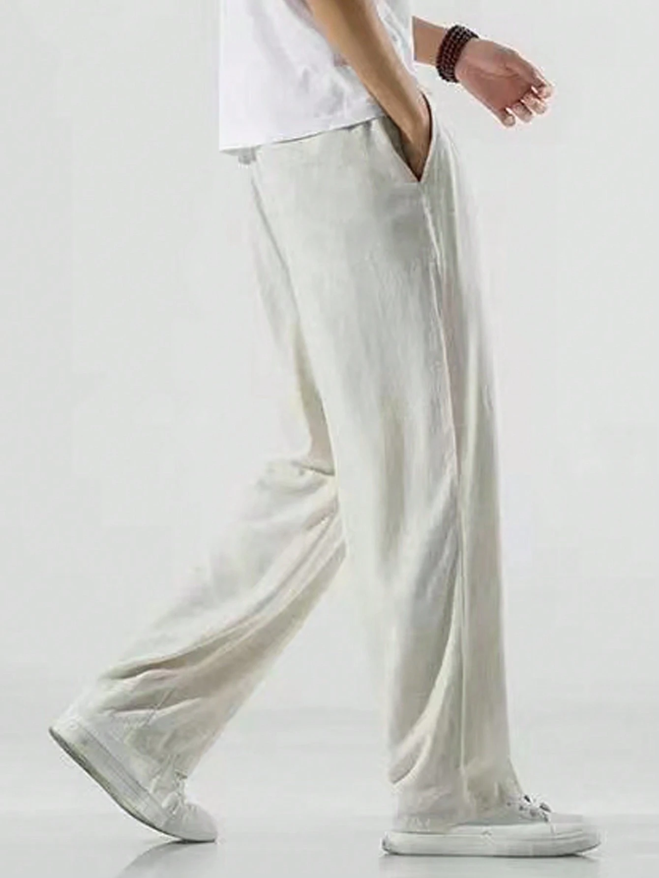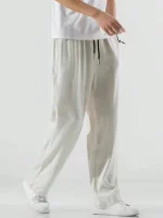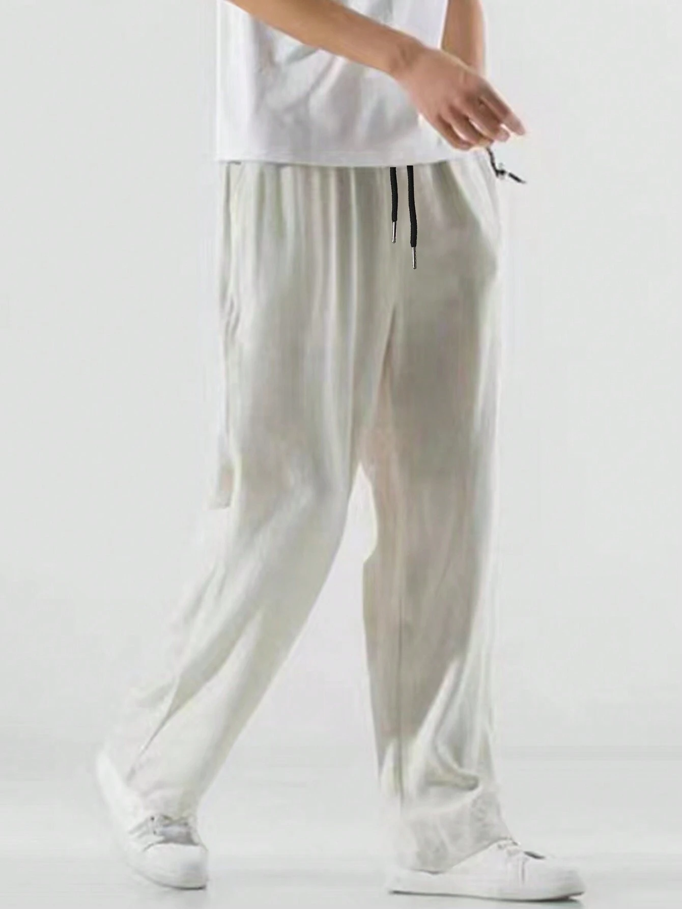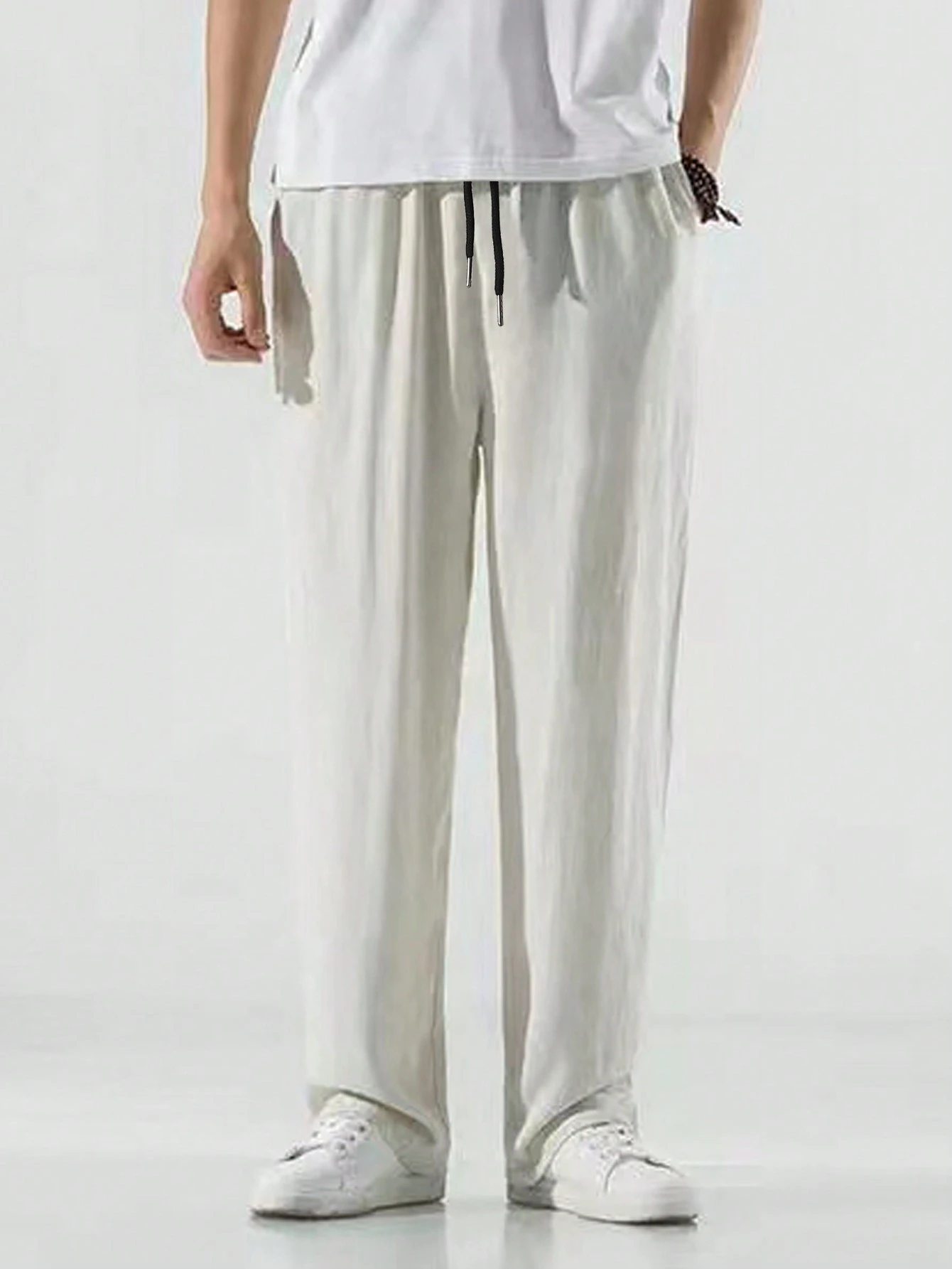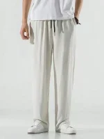 Men’s Solid Straight-Leg Pants with Elastic Drawstring Waist – Manfinity Hypemode