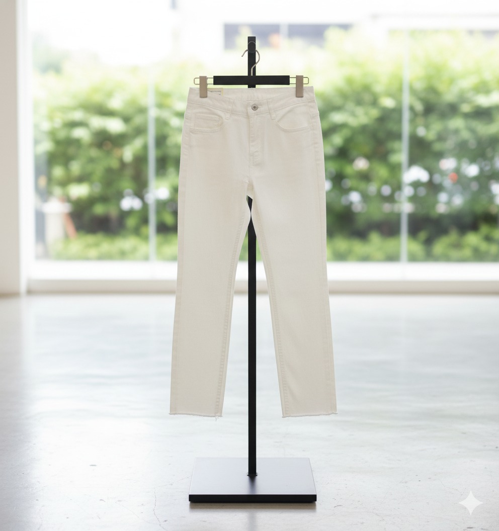 بنطلون جينز أبيض للأطفال، خامة مرنة وقصة مستقيمة أنيقة، تصميم عصري بسيط يناسب مختلف الإطلالات