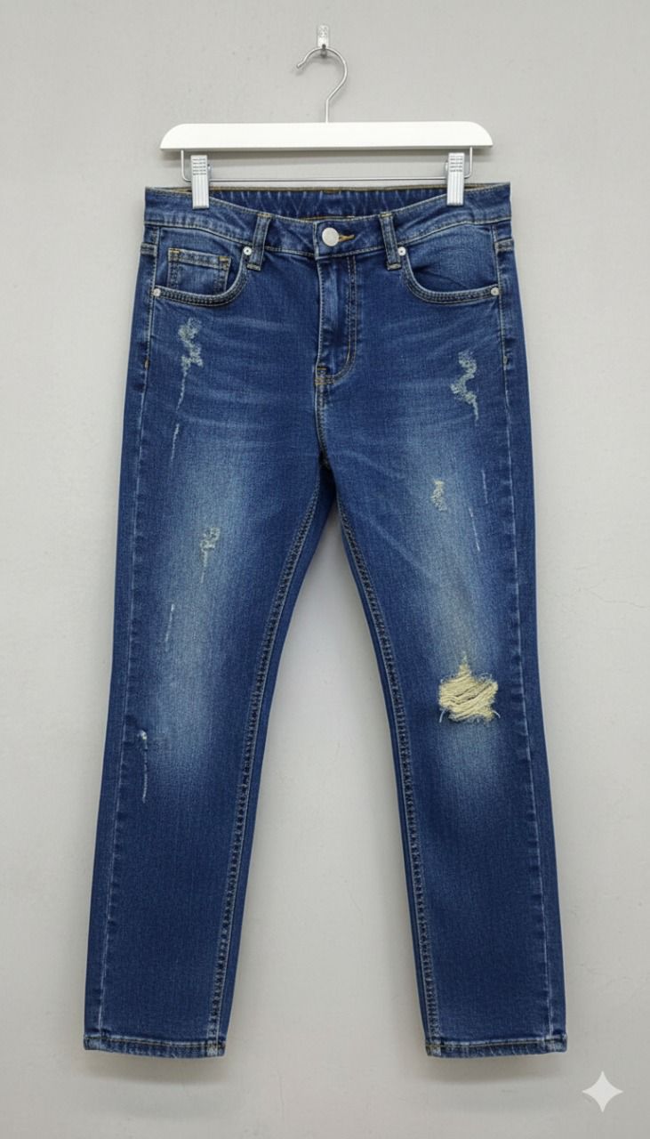 يتميز بخامة قطنية مرنة تمنح راحة لا مثيل لها طوال اليوم، وتصميم ممزق أنيق يواكب أحدث خطوط الموضة.