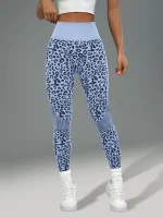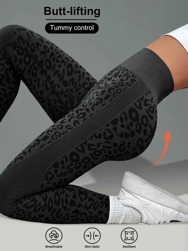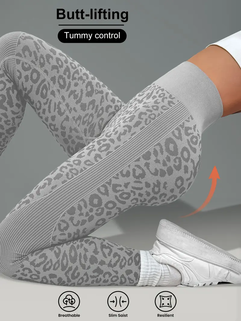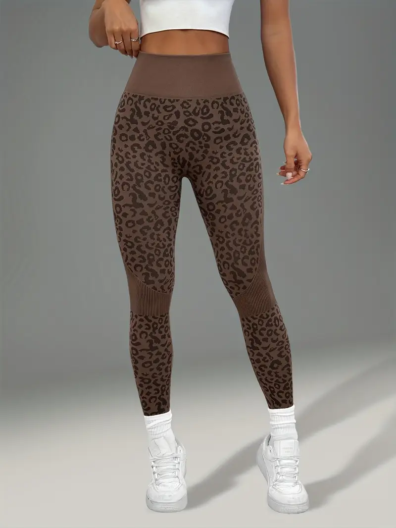 بنطلون يوجا نسائي بطبعة جلد الفهد، مريح ومرن للتمارين الرياضية والملابس الكاجوال