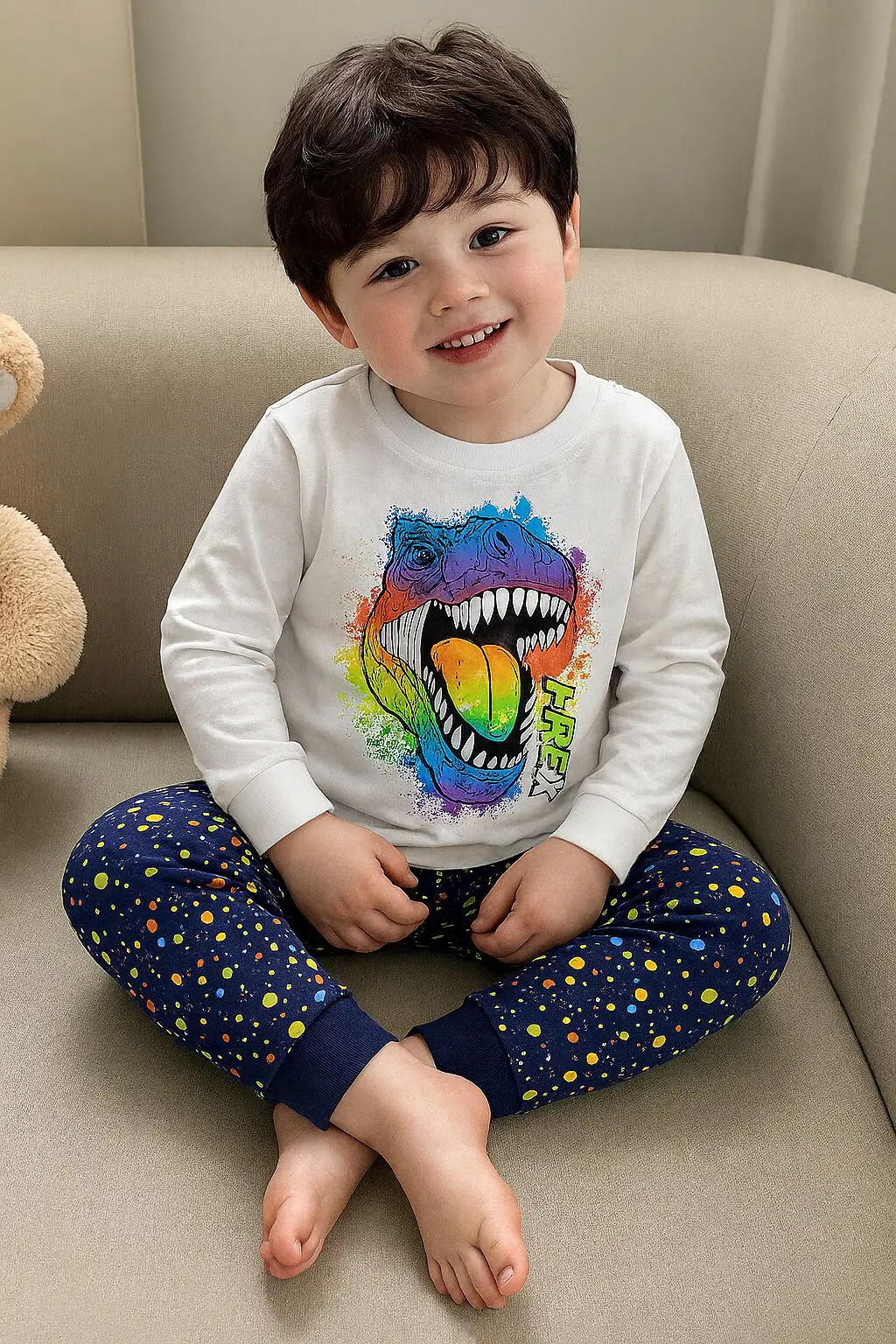 بيجامة أولاد قطنية بطبعة ديناصور T-REX ملونة