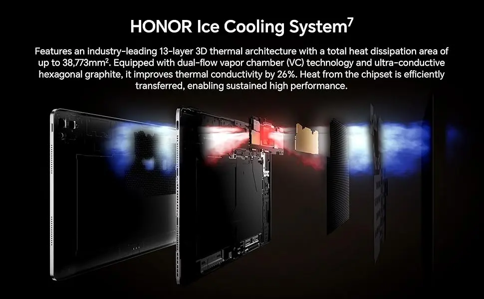 🎵 [صوت سينمائي وعالي الجودة وتصميم ممتاز] – 8 مكبرات صوت ستيريو مع صوت HONOR المكاني، تقنية IMAX المحسنة، هيكل رفيع للغاية من الألومنيوم بسمك 5.79 ملم، ووزن خفيف يبلغ 595 غرام لسهولة الحمل.