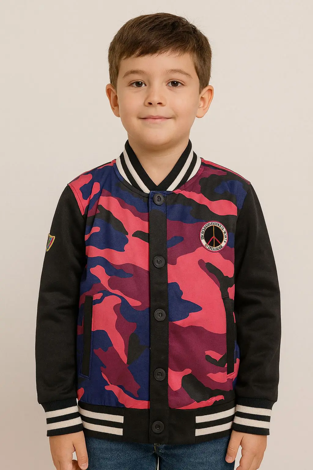 يُقدَّم هذا الجاكيت الأنيق للأطفال بتصميم عصري يجمع بين الأسلوب الرياضي واللمسة المميزة للألوان الجريئة. صُمم بعناية ليمنح الأطفال الدفء والراحة خلال الأيام الباردة، مع طابع تمويهي فريد يعكس روح الأناقة والتميز في كل إطلالة.