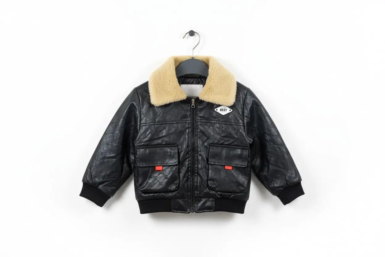 يتميز هذا الجاكيت الشتوي للأطفال بتصميم يجمع بين الفخامة والراحة، مصنوع من جلد صناعي عالي الجودة يمنح مظهرًا أنيقًا ومتانة تدوم طويلاً.