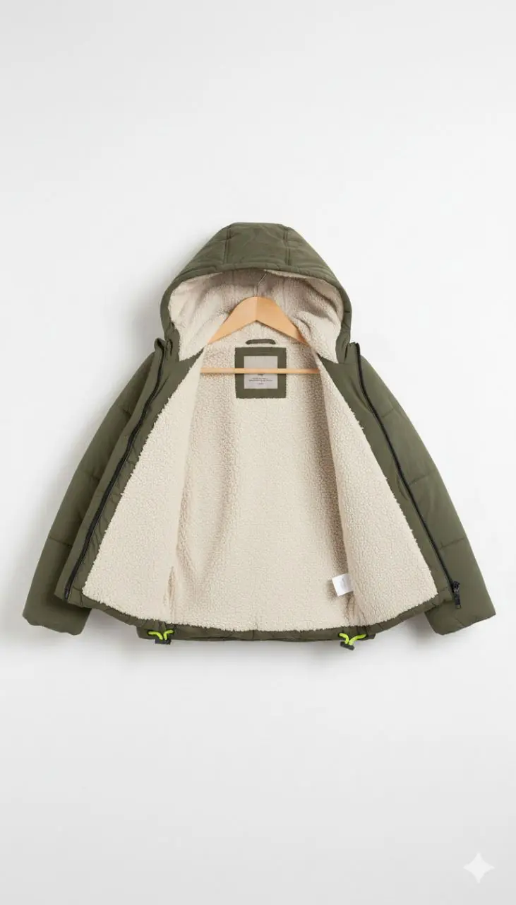 تمنح البطانة الداخلية المصنوعة من الفرو الصناعي دفئًا ناعمًا وشعورًا بالراحة طوال اليوم، بينما تضيف القبعة القابلة للفصل لمسة عملية تُتيح حرية الاختيار حسب الطقس.