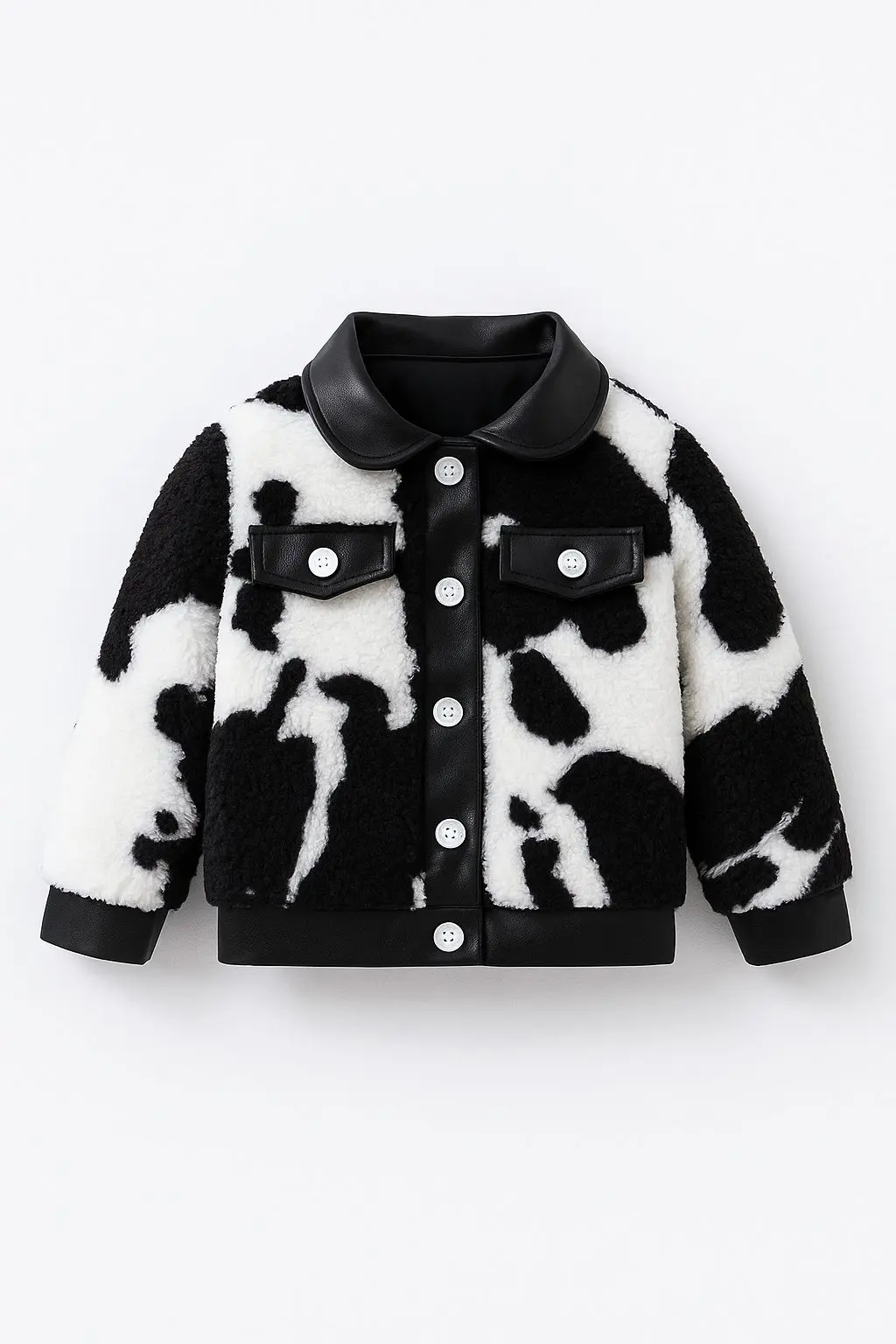 جاكيت أطفال فرو صناعي بنقشة كاو، تصميم شتوي دافئ وعصري، مثالي للمدرسة أو المناسبات الكاجوال خلال فصل الشتاء