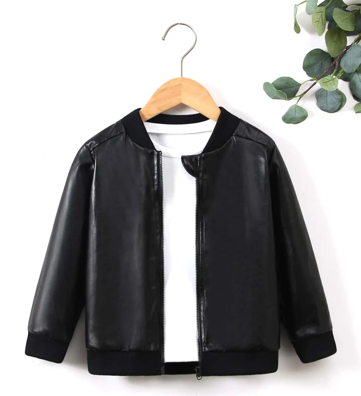 امنح طفلك مظهرًا أنيقًا ومريحًا مع هذا الجاكيت الجلدي الأسود الكلاسيكي الذي يجمع بين الدفء والفخامة.