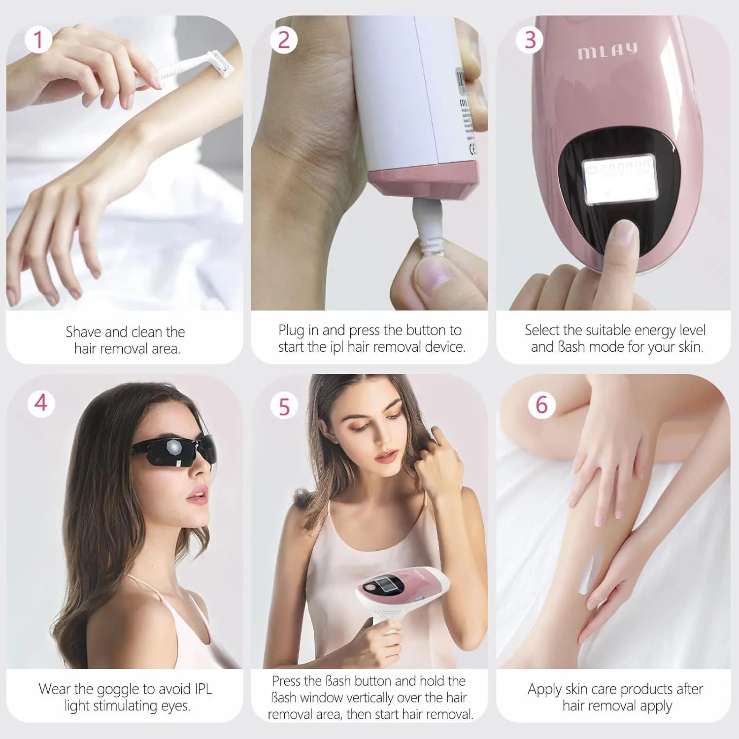 - 【ضمان وعبوة لمدة عامين】: توفر ملاي ضمانًا لمدة عامين، فلا تتردد في الشراء. قائمة المنتج: 1 × جهاز إزالة الشعر بالليزر IPL، 1 * مصباح اتش ار، 1 * عدسة فلاش لإزالة الشعر 500,000 مرة (3.9 سم مربع)، 1 * نظارات، 1 * مسحة تنظيف العدسات، دليل المستخدم، 1 * محول تيار متردد 100 فولت – 240 فولت.