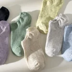 جوارب نسائية صيفية قصيرة ناعمة وخفيفة، طقم 5 أزواج بألوان عصرية، مناسبة للارتداء اليومي أو أثناء التنقل والسفر