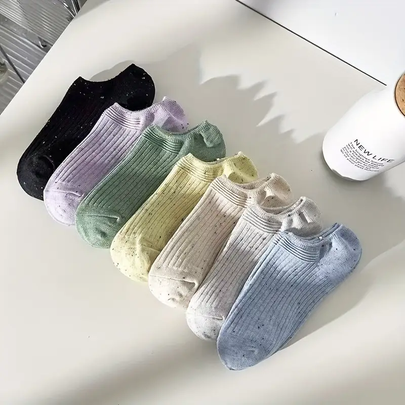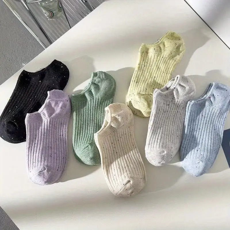 جوارب نسائية صيفية قصيرة ناعمة وخفيفة، طقم 5 أزواج بألوان عصرية، مناسبة للارتداء اليومي أو أثناء التنقل والسفر