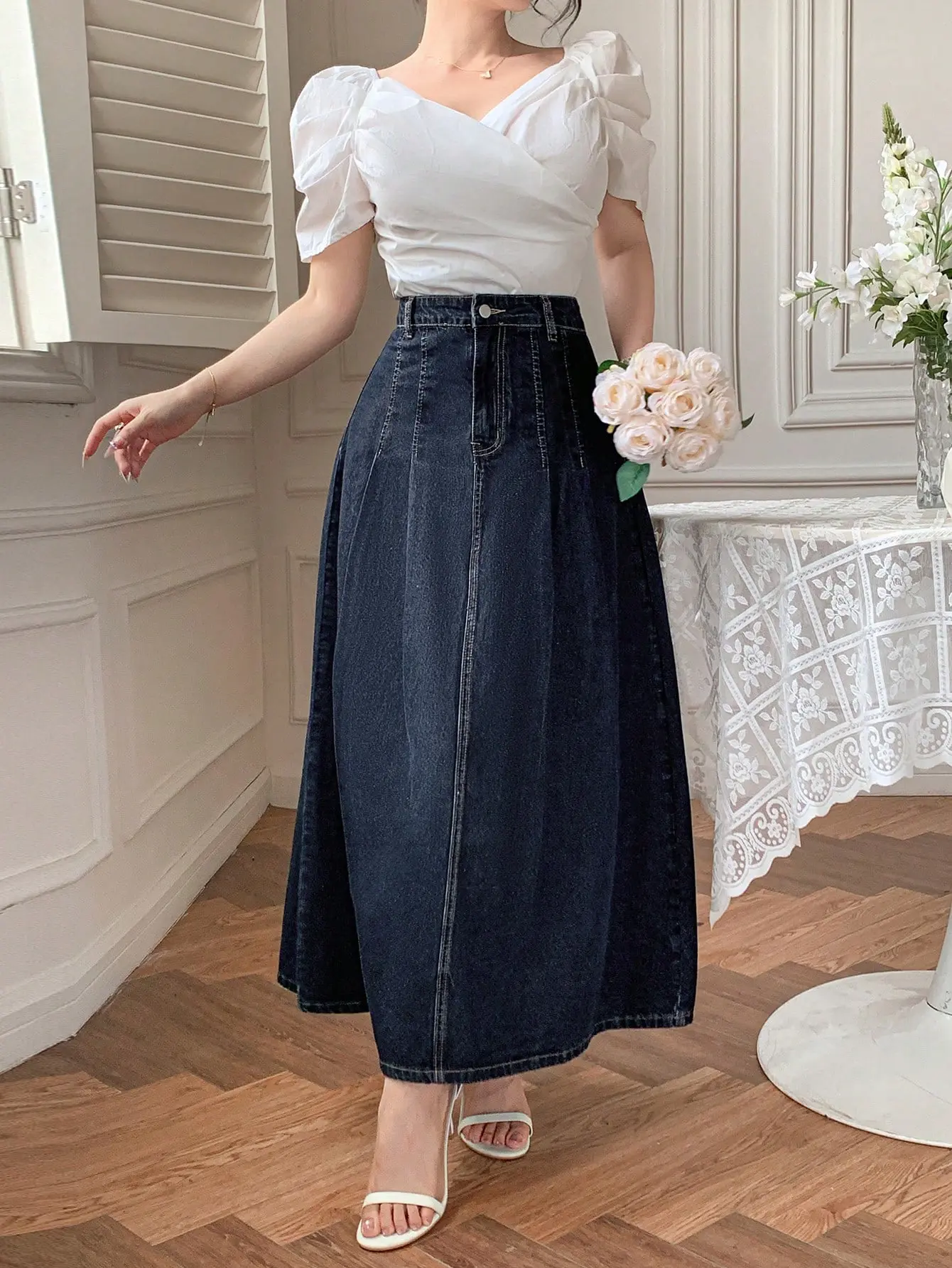 تمنح هذه الجيبة النسائية من DAZY إطلالة كاجوال أنيقة تناسب مختلف الإطلالات اليومية. بتصميمها المصنوع من الدنيم الداكن، تجمع بين الطابع العصري والعملية لتكون خياراً مثالياً لموسمي الربيع والصيف.