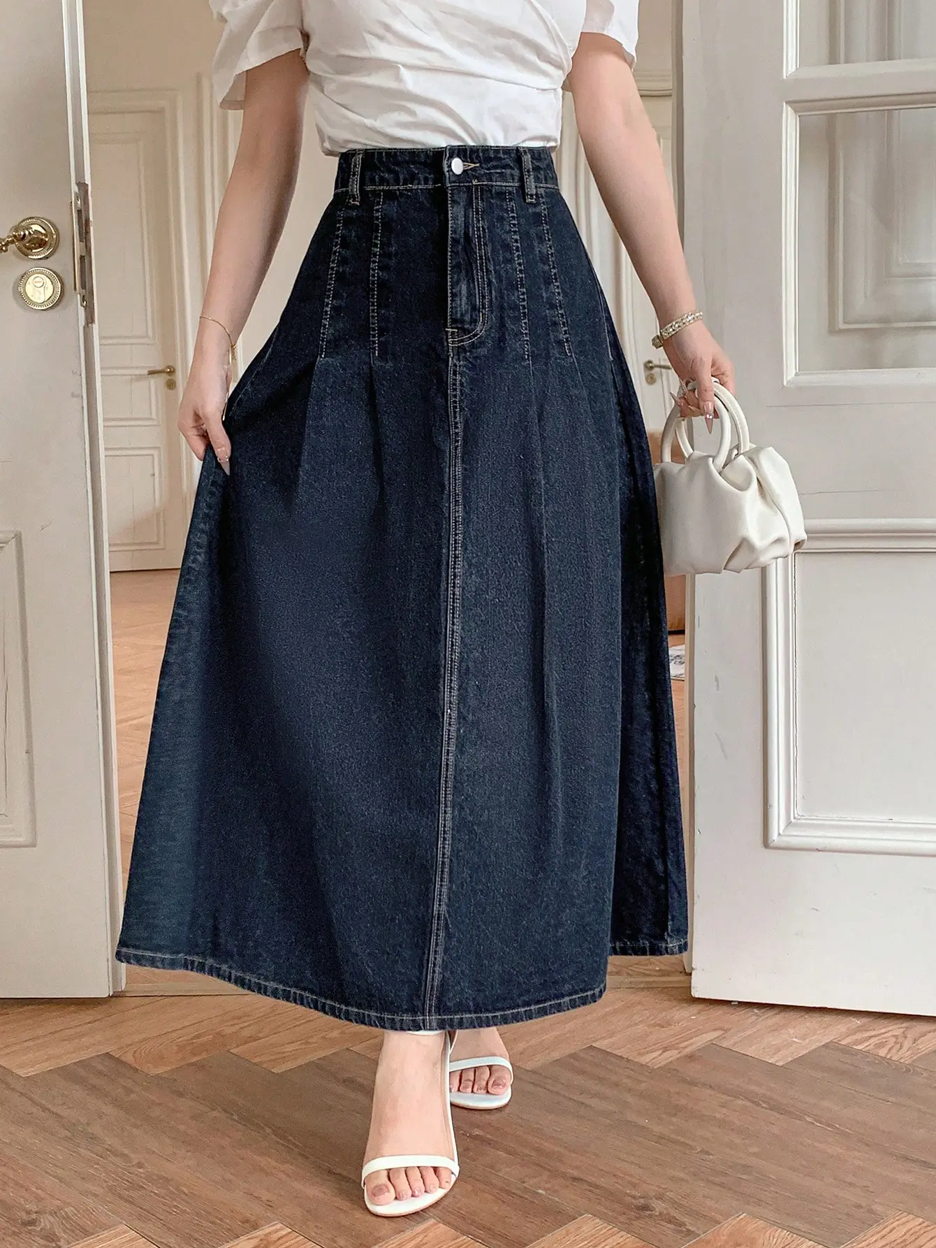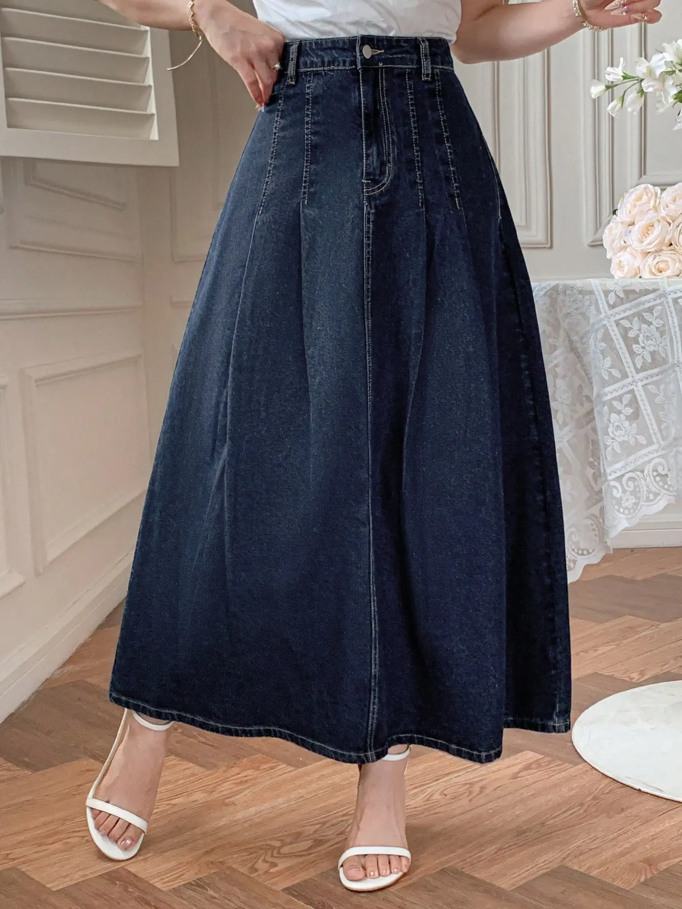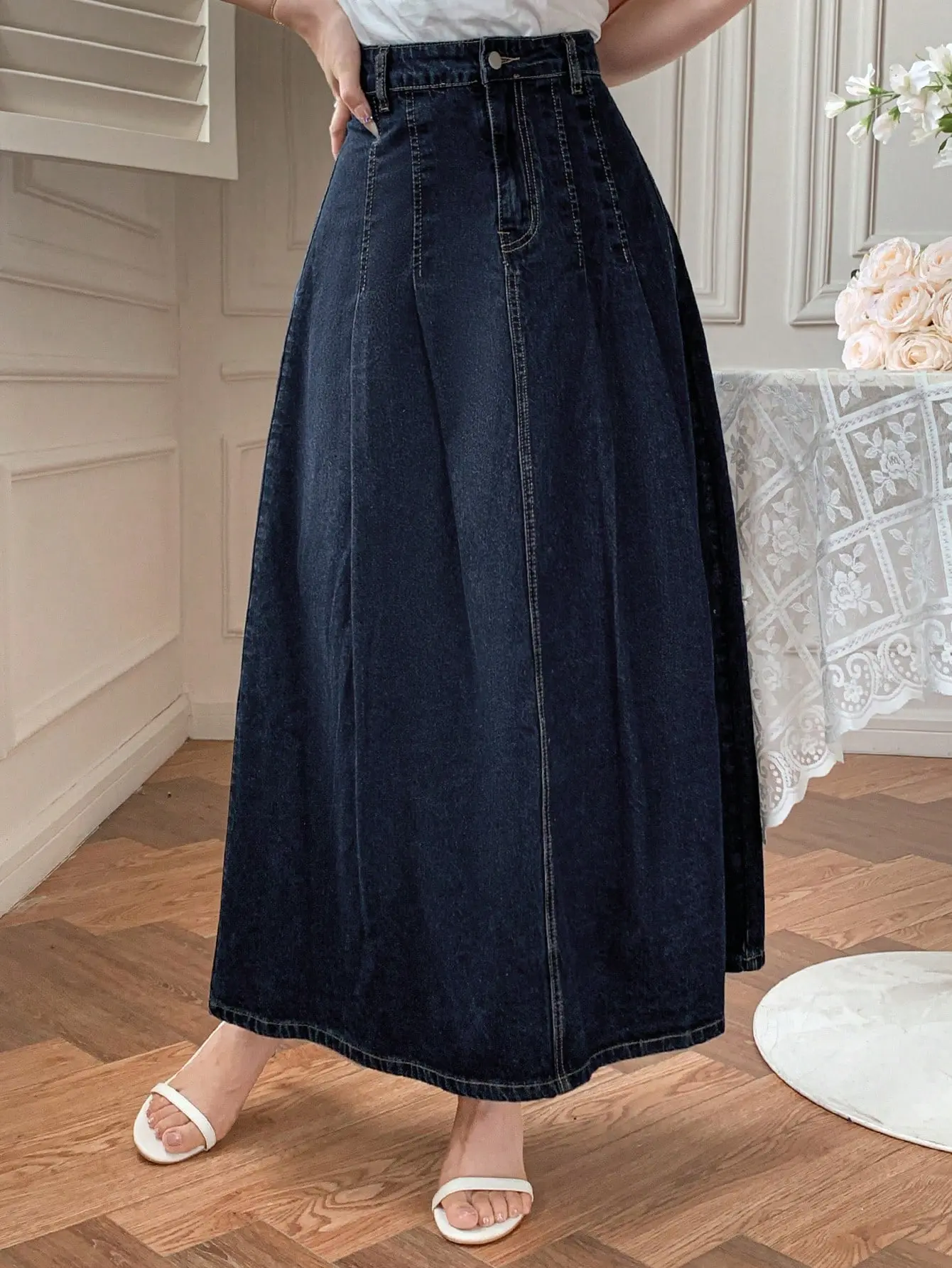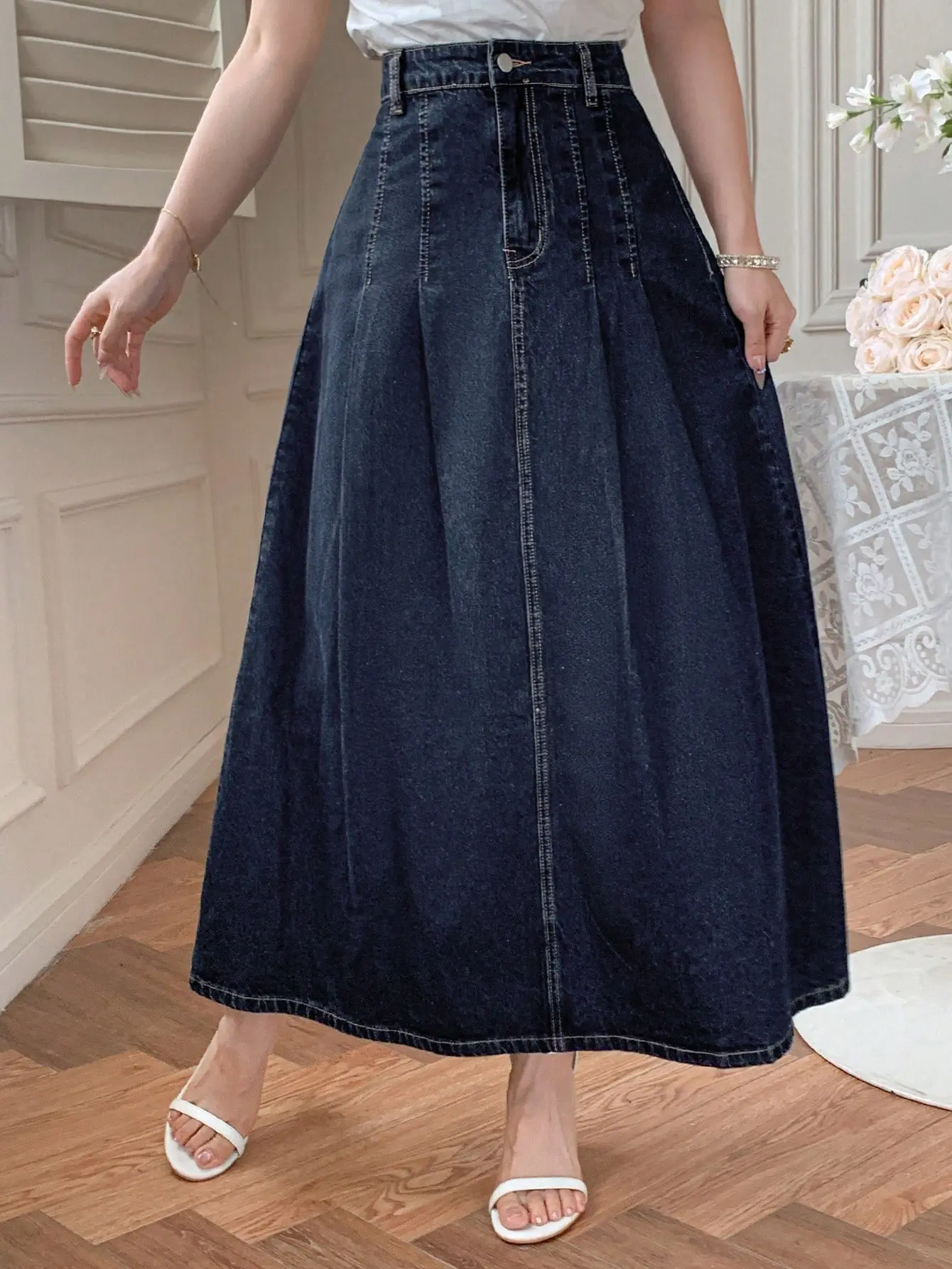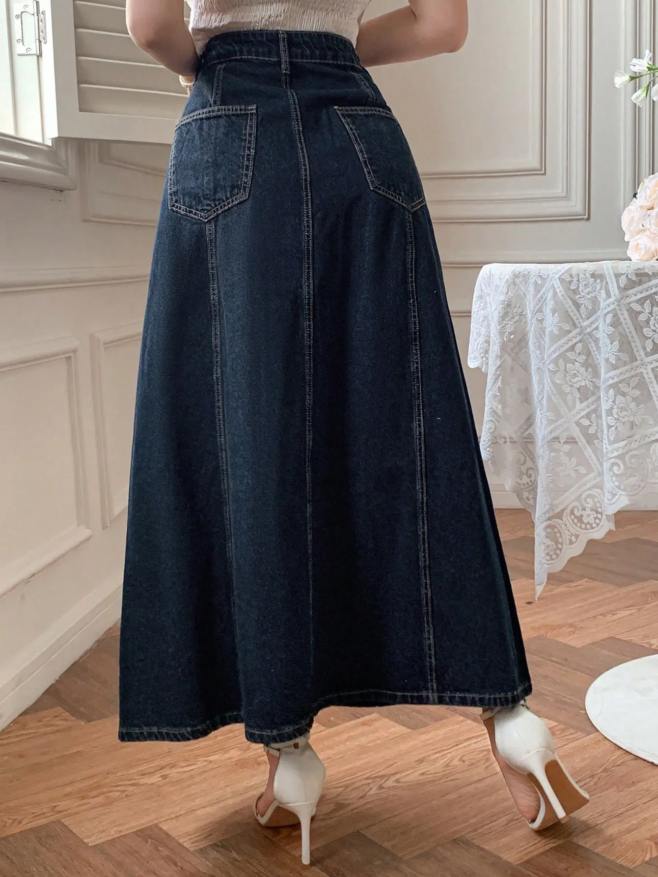 جيبة نسائية كاجوال من الجينز الداكن من DAZY، تصميم دنيم داكن أنيق يناسب مختلف التنسيقات، لربيع وصيف أنيق