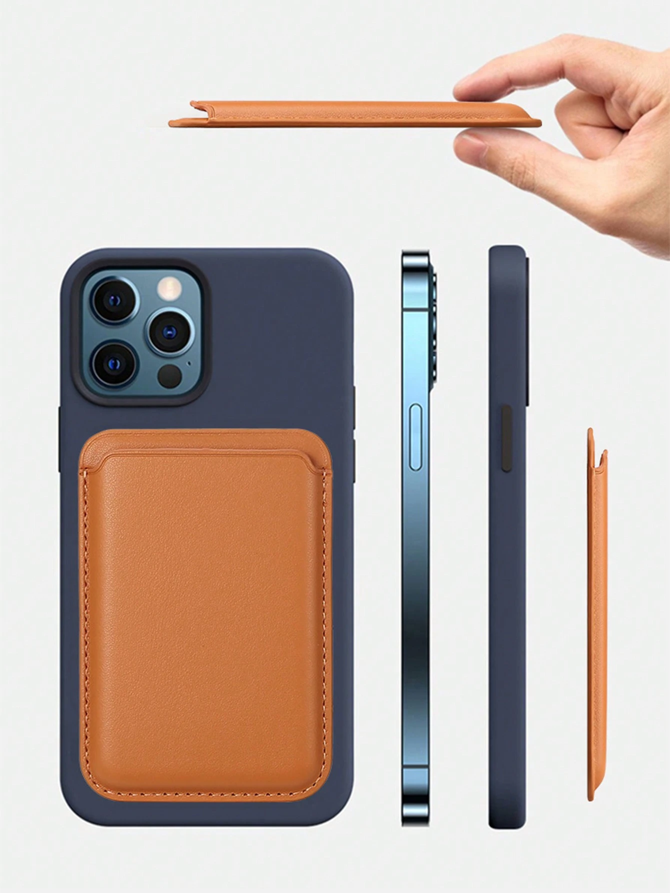 Slim Magnetic Faux Leather Card Wallet for iPhone – MagSafe-Compatible Card Holder with Soft Lining and Slip Pocket