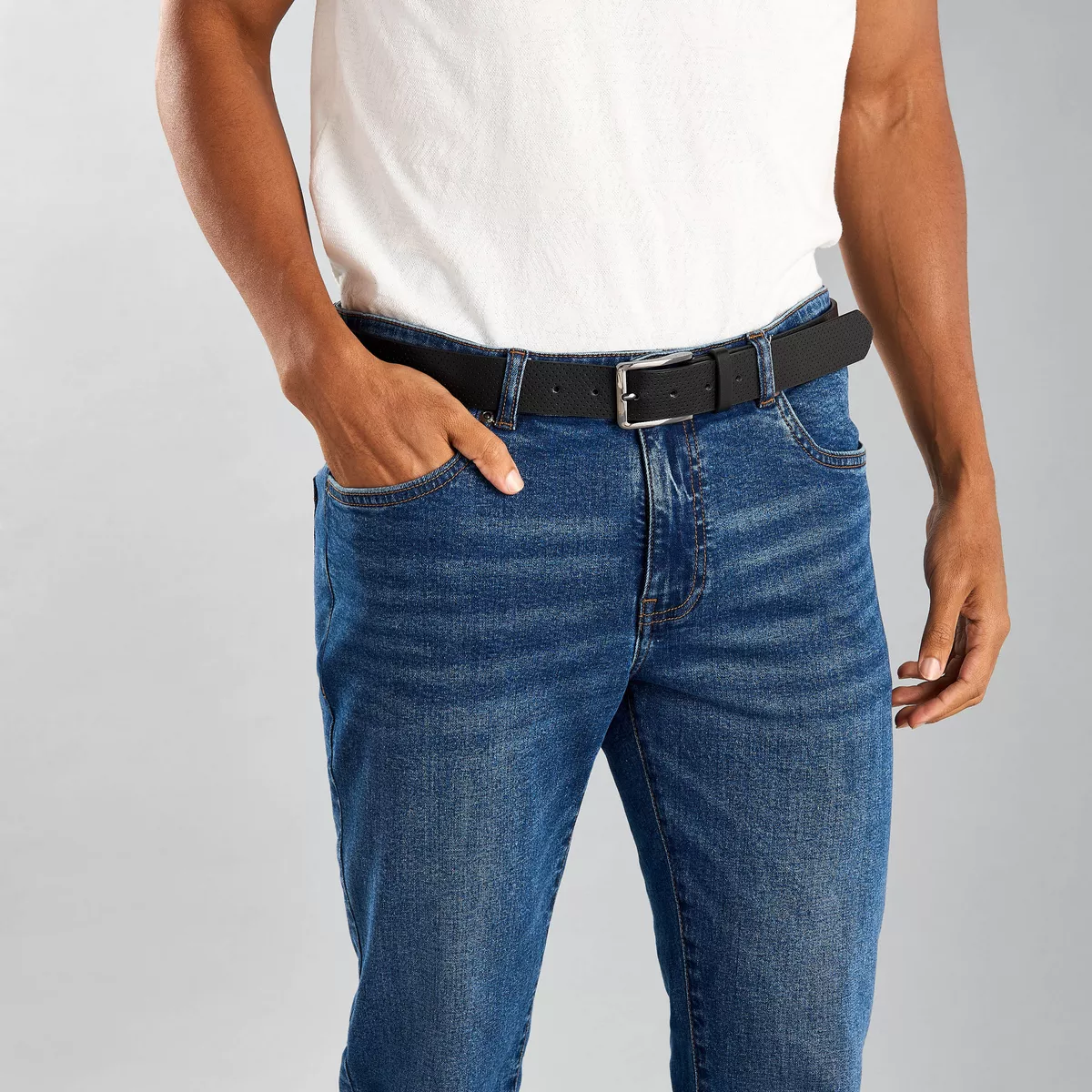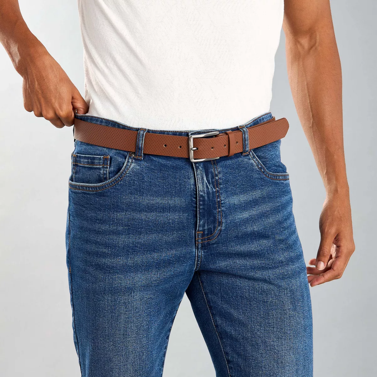 أضف إلى خزانتك لمسة من الأناقة مع هذا الحزام المصنوع من خامات عالية الجودة. يتميز بتصميمه الملمس الفريد الذي يتناغم بسهولة مع الملابس الكاجوال والرسمية، ويضمن مشبكه القوي تثبيتاً آمناً.