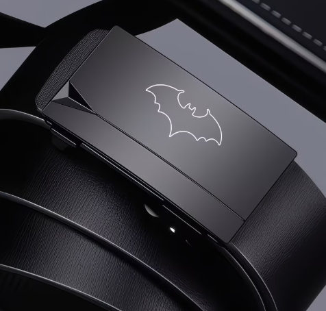حزام رجالي عملي بتصميم مميز يحمل شعار الخفاش ليعكس القوة والأناقة في نفس الوقت.