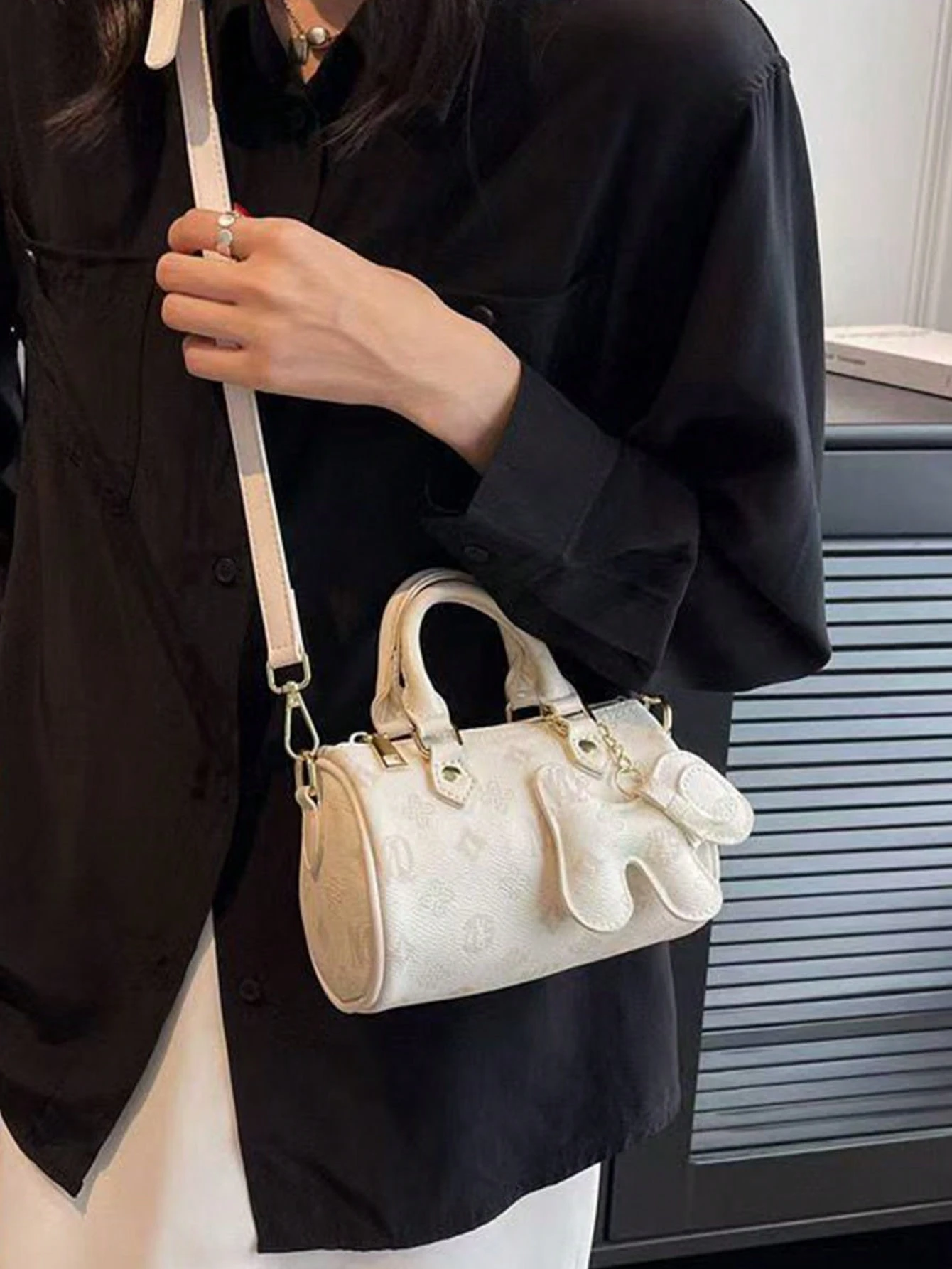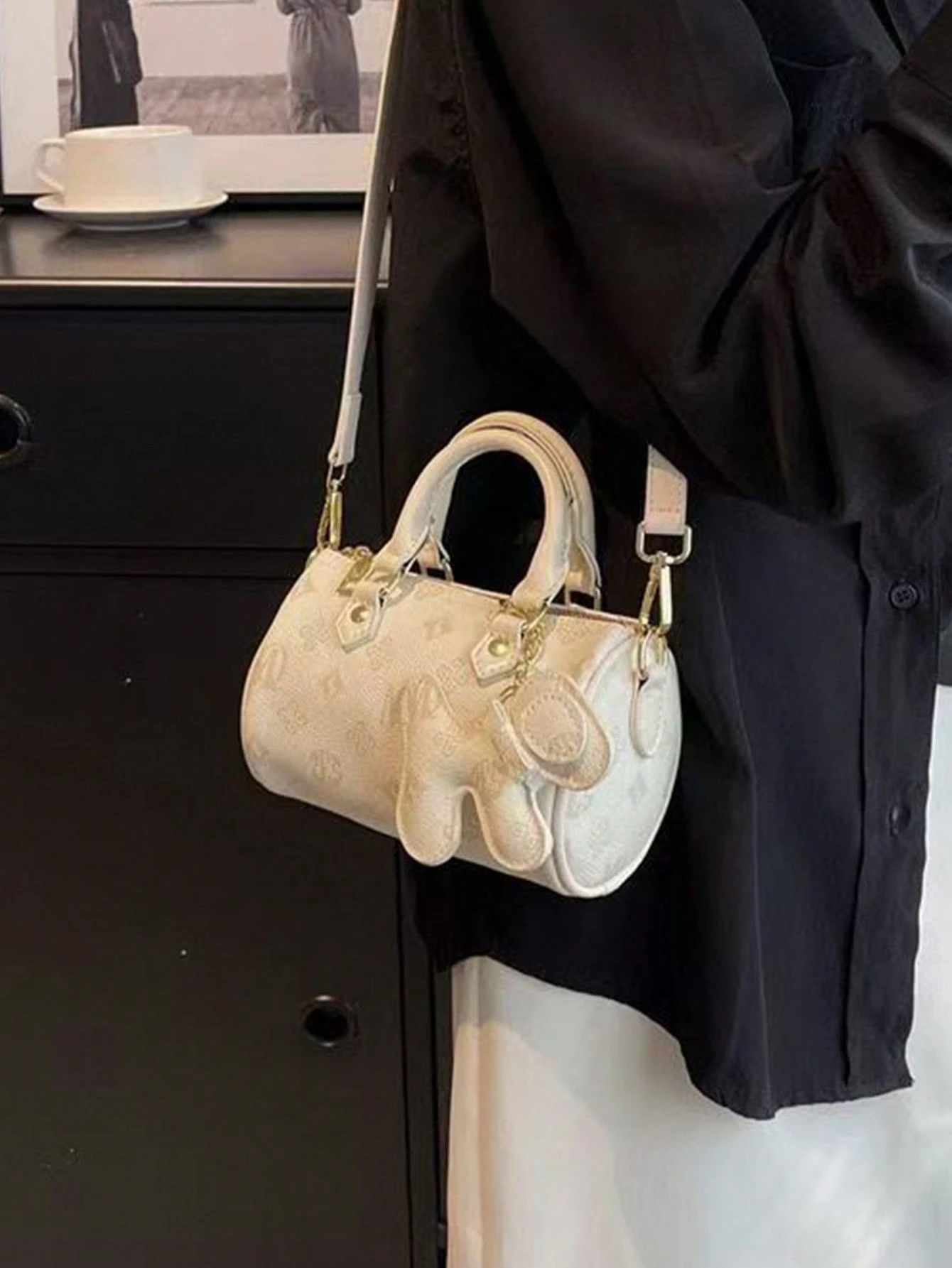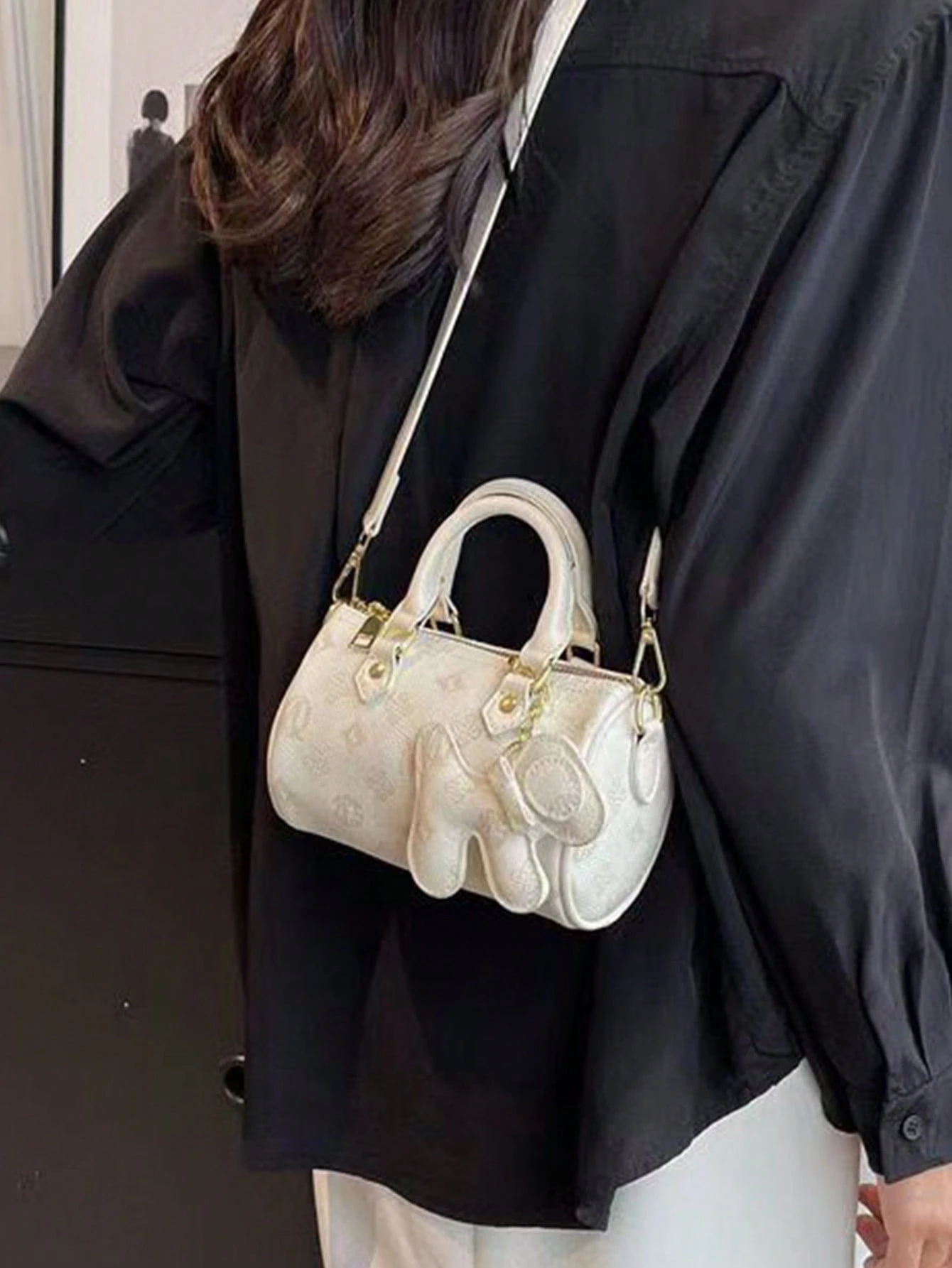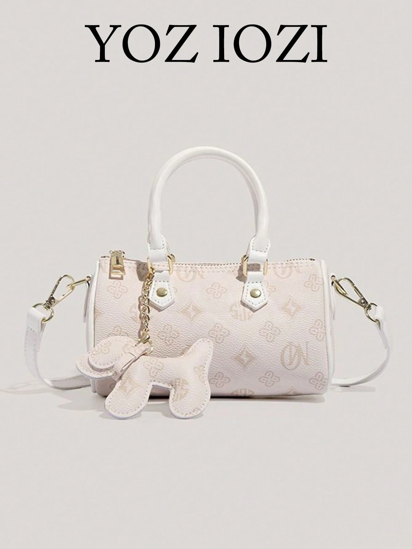 حقيبة بولينج نسائية أنيقة بنقشة ليتشي، جلد صناعي كلاسيكي للعمل والتنقل، مناسب لفصلي خريف/ الصيف