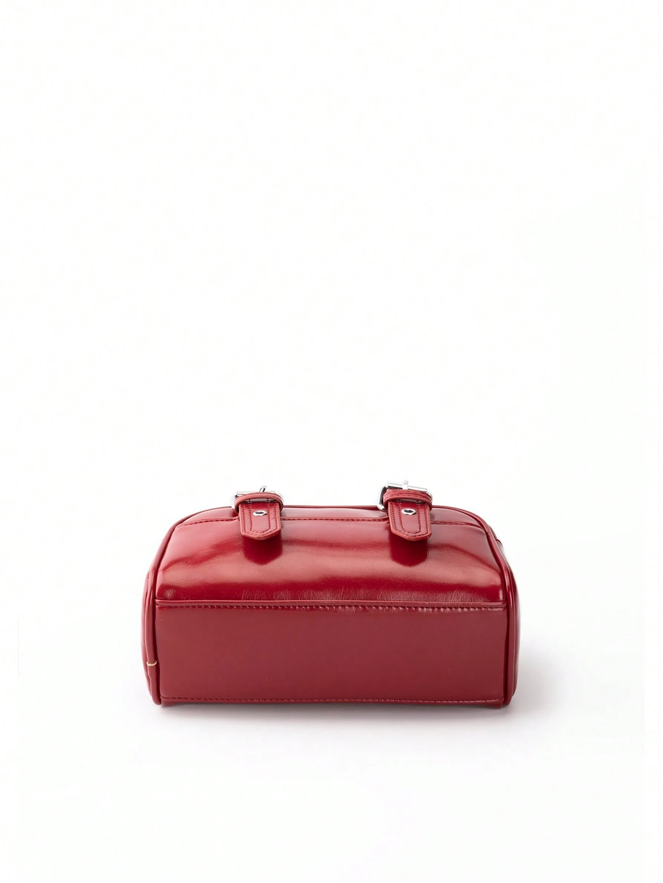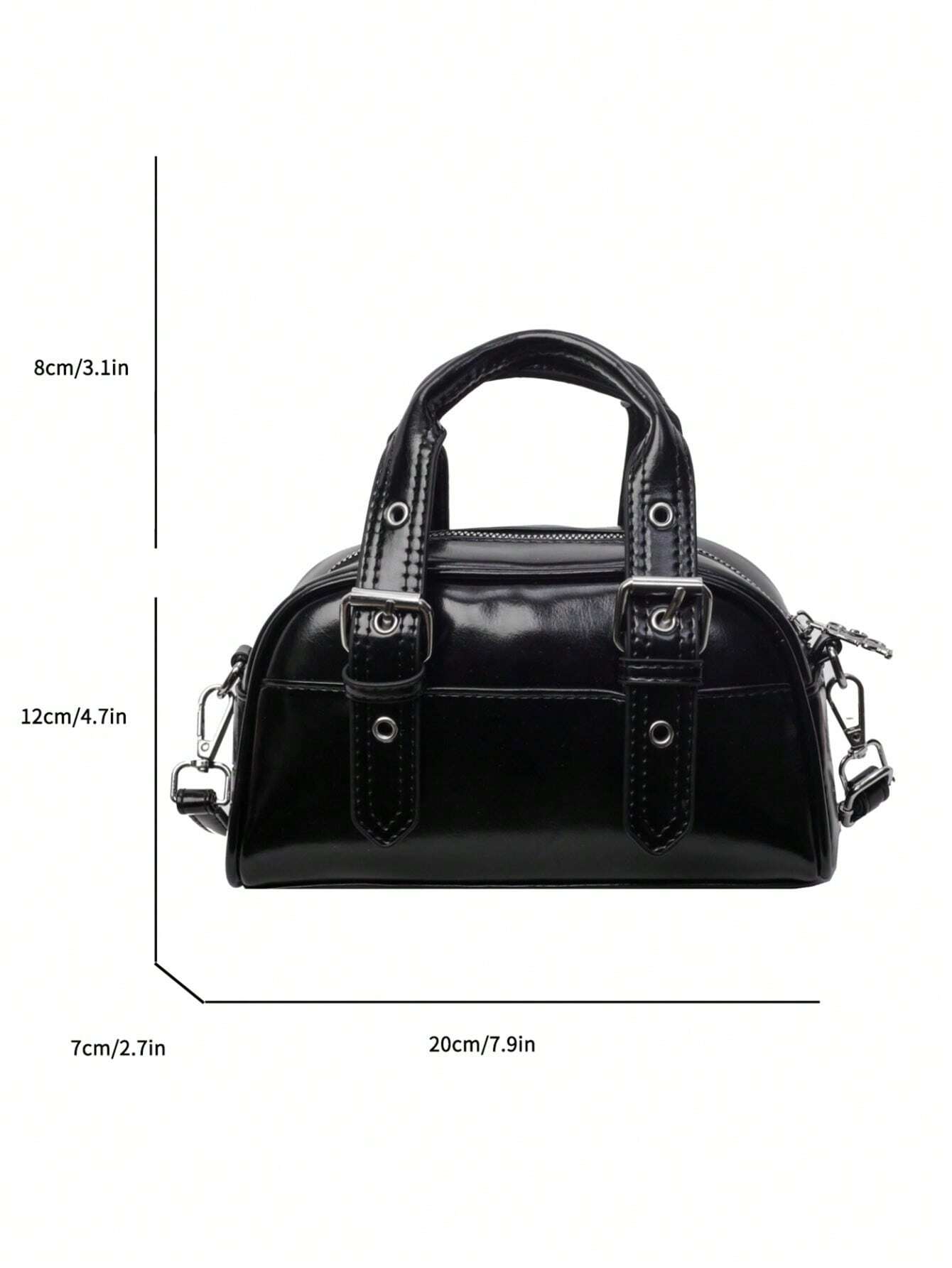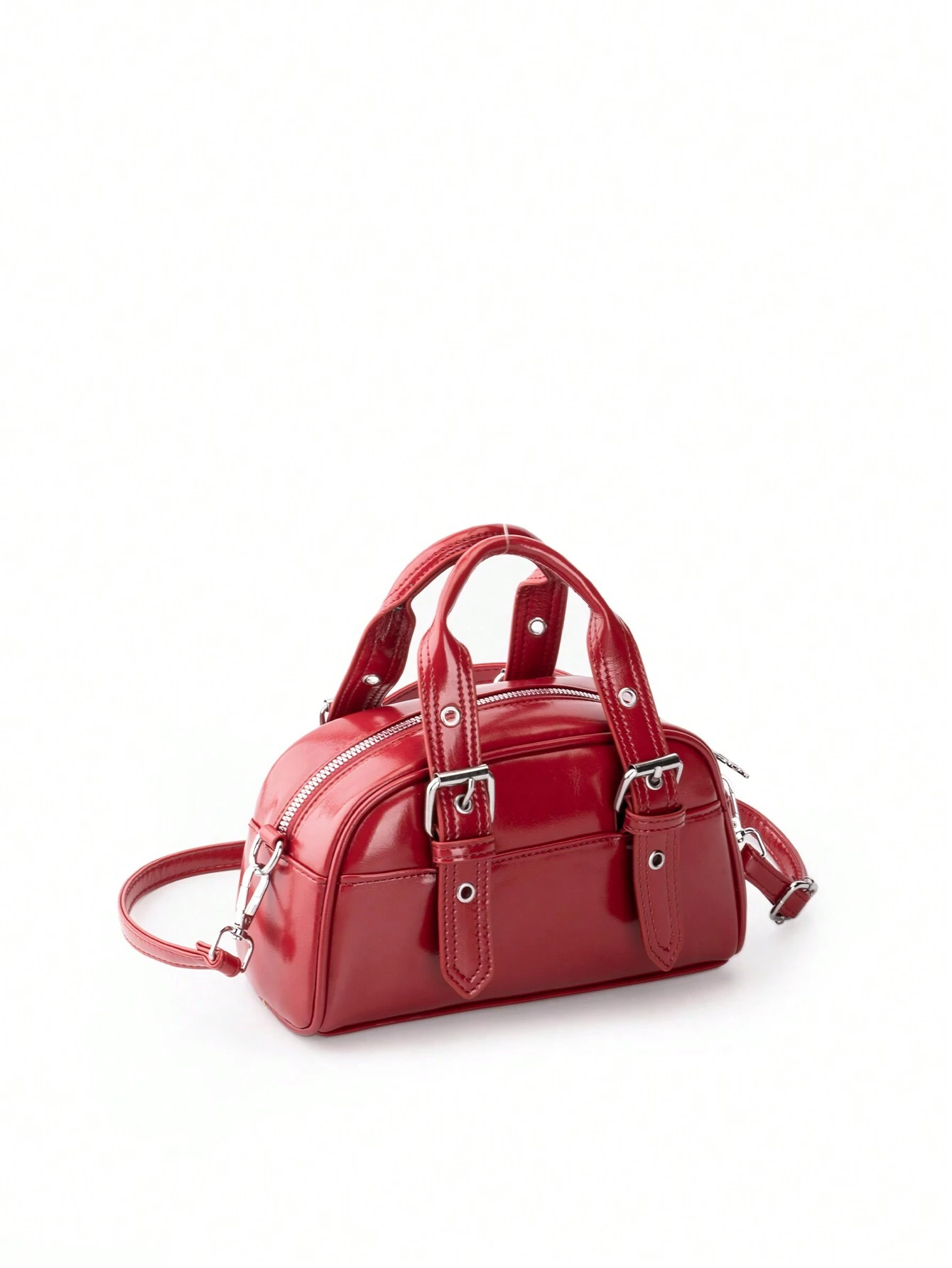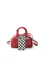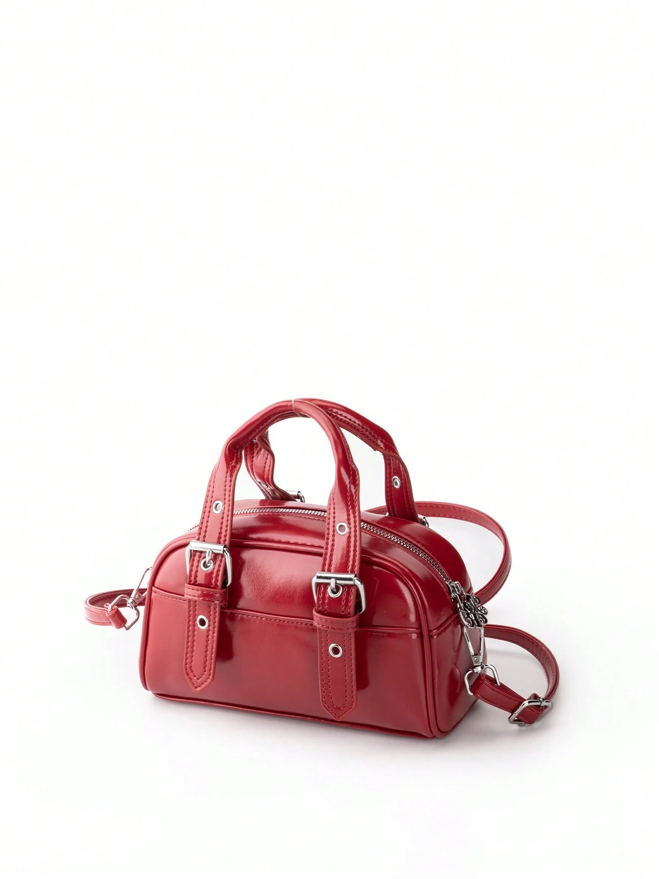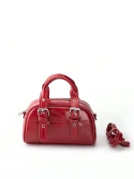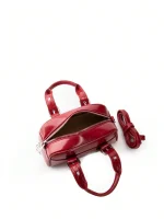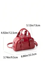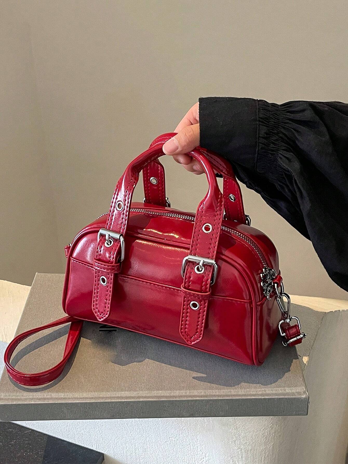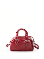 حقيبة بولينج نسائية نبيذي، جلد صناعي بتفاصيل بانك وحلقات معدنية، ستايل كاجوال عصري للاستخدام اليومي