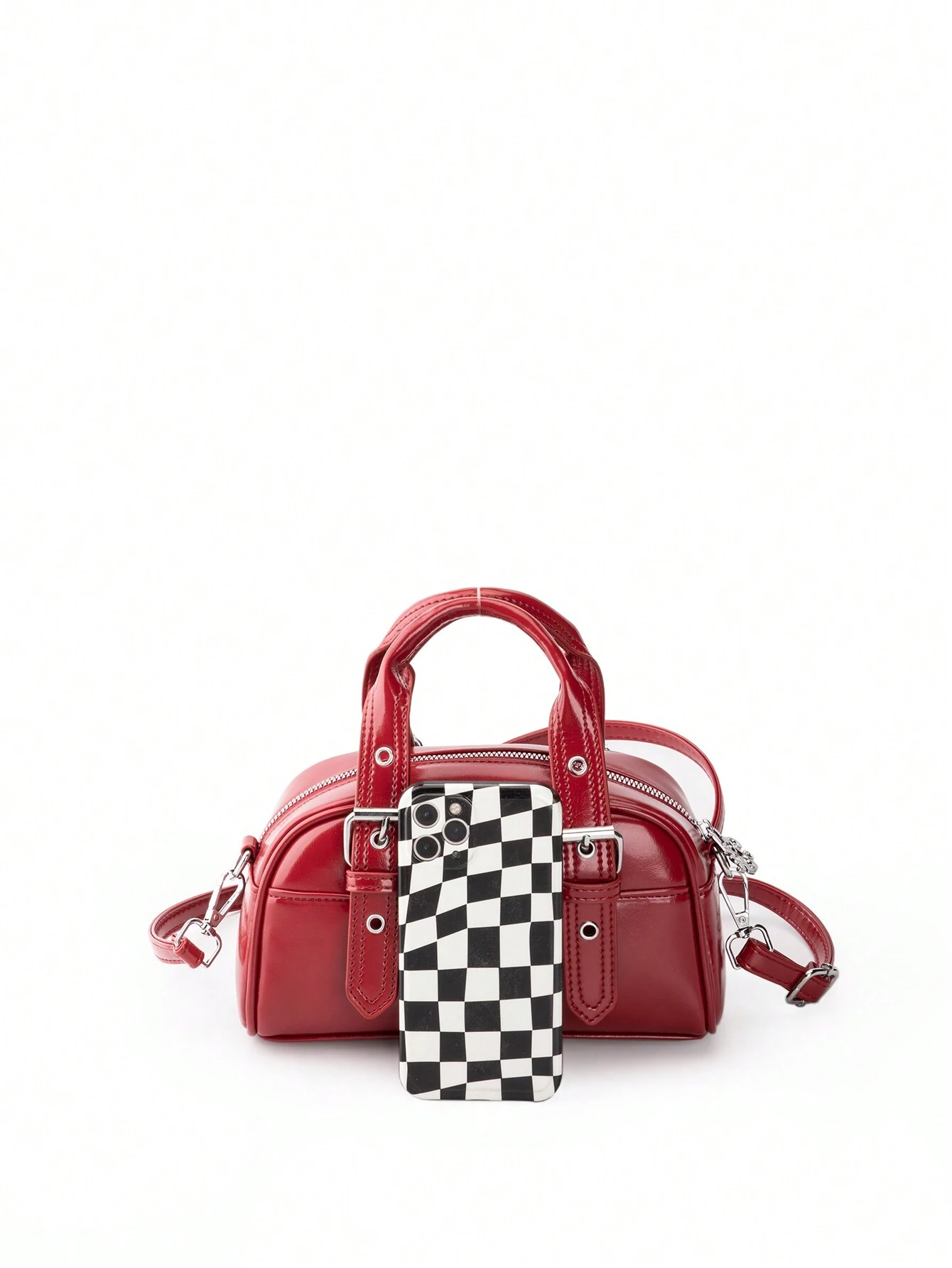 تميّزي بإطلالة جريئة وعصرية مع حقيبة البولينج النسائية بلون النبيذي وتفاصيل الباتشوورك الفريدة. تصميم يجمع بين روح البانك والعملية، لتناسب نمط حياتك اليومي سواء في المدرسة أو في المشاوير الكاجوال.