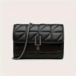 حقيبة كتف للنساء مربعة صغيرة بنقشة تارتان سوداء، جلد صناعي أنيق للاستخدام اليومي، تصميم أنيق ومضغوط يناسب الإطلالات العصرية