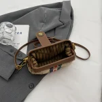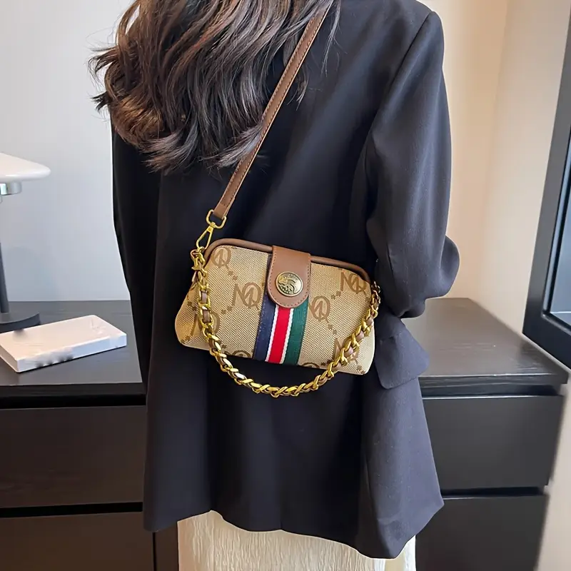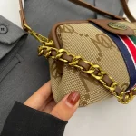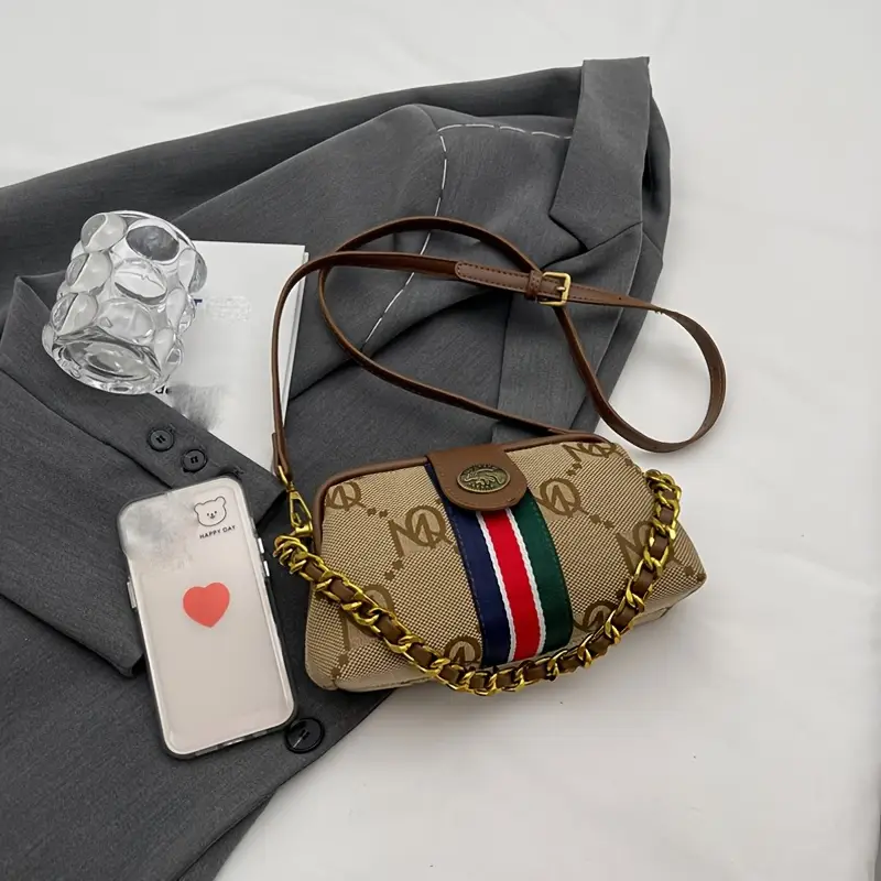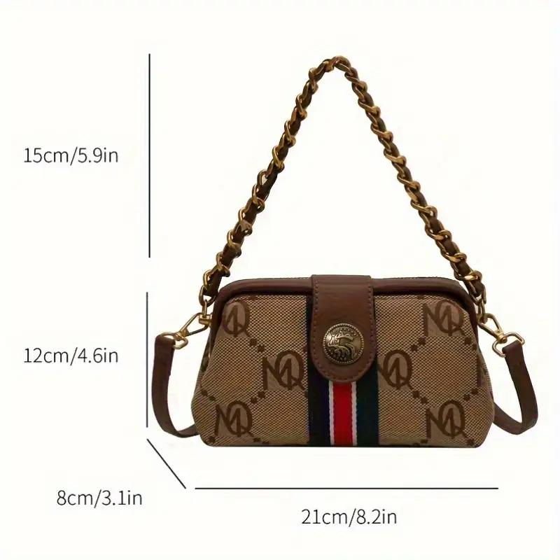 استمتعي بإطلالة متكاملة مع هذه الحقيبة النسائية العتيقة ذات التصميم المخطط المميز.